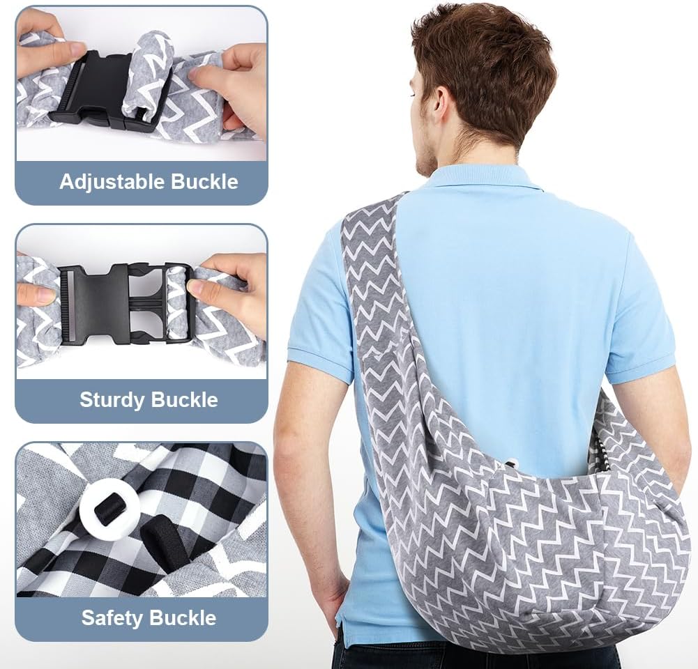• Двойна застраховка: има два чифта копчета за регулиране на размера на отвора на чантата, а предпазната кука на джоба с цип може да се окачи на нашийника на домашния любимец, за да се гарантира безопасността му в случай на случайно падане.