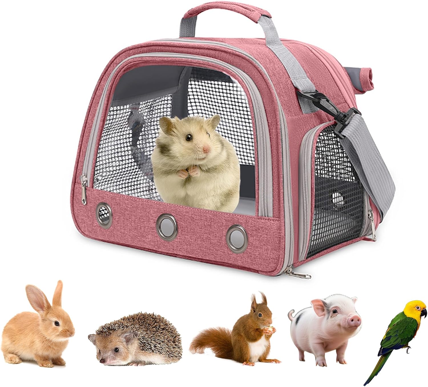APKOL Чанта за носене на малки домашни любимци, Чанта за носене на морски свинчета, Транспортна кутия, Чанта за носене на зайци, Чанта за носене на малки домашни любимци за хамстери, таралежи, морски свинчета и малки домашни любимци, Розова