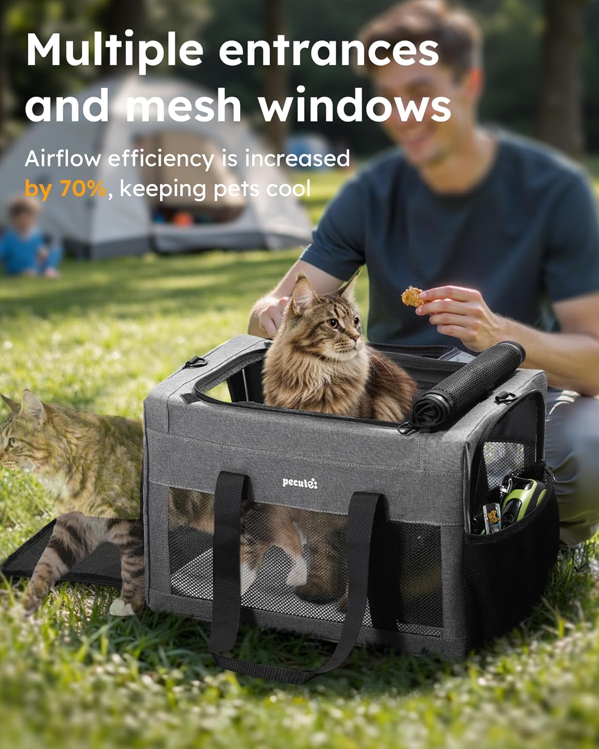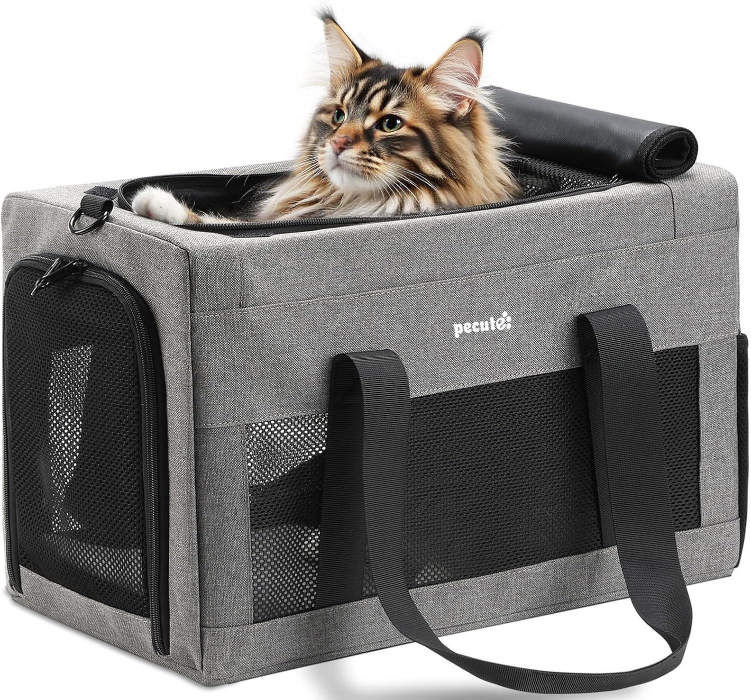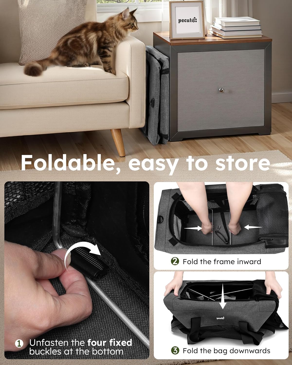 Чанта за транспорт на котки pecute, здрава чанта за носене на домашни любимци, кутия за транспорт на котки, лека сгъваема чанта за котки и малки кучета, идеална за пътуване до 6 кг, светло сива, XL