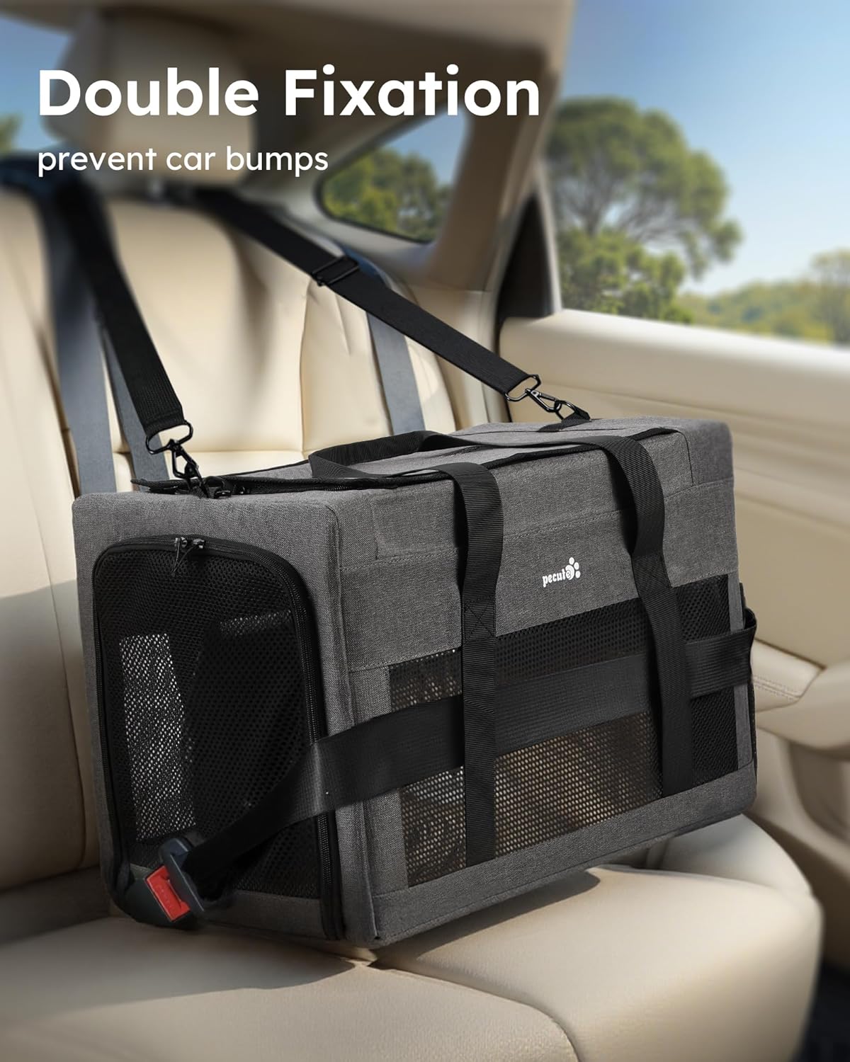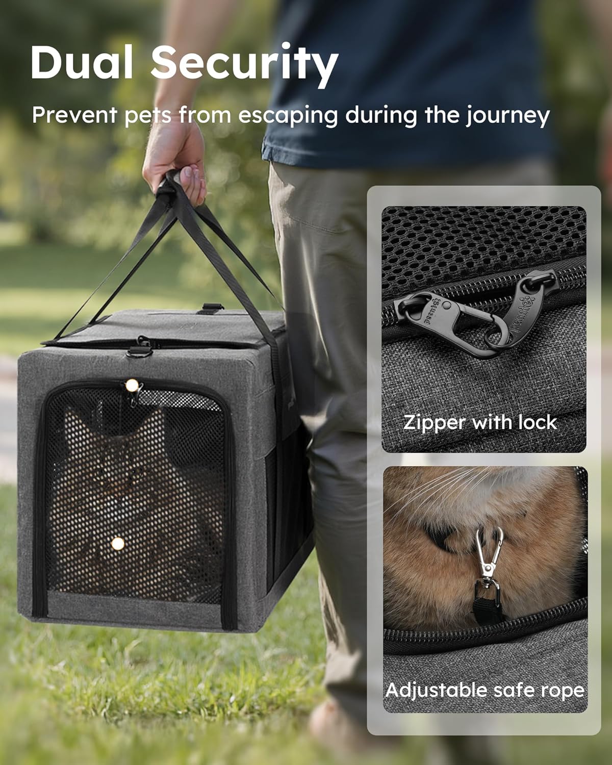 • 【Стабилна и удобна】: Многофункционалният дизайн с входове отгоре и отстрани позволява лесен достъп. Малката странична вратичка е удобна за хранене или успокояване, което е особено полезно за малка чанта за транспорт на кучета. Двустранната материя за зимата и лятото се адаптира към всички сезони и увеличава комфорта благодарение на мека вътрешна подплата, както и на здрав дървен плот за по-добра поддръжка на теглото. Тази чанта за домашни любимци е идеална за релаксиращи пътувания с вашия домашен любимец.