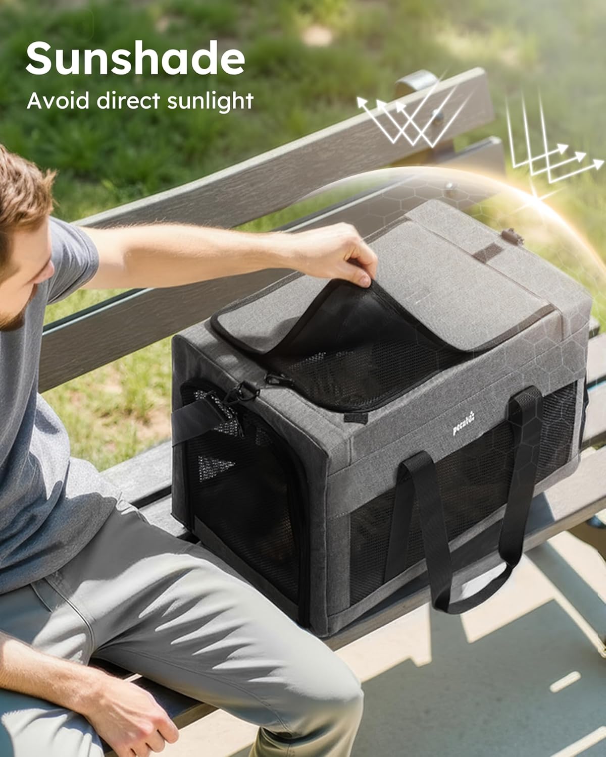• Лека и сгъваема, практична за излизане: чантата за транспорт на котки може да се сгъва и съхранява, без да заема място. Може да се сглоби бързо и лесно, което я прави много подходяща за пътуване, посещения в болница и спешна евакуация. С дръжка и регулируема презрамка за рамо можете да изберете удобен начин на носене и да намалите стреса. Чантата за транспорт на кучета може да се използва по различни начини, включително като чанта за през рамо, чанта, куфар, кутия за транспорт.