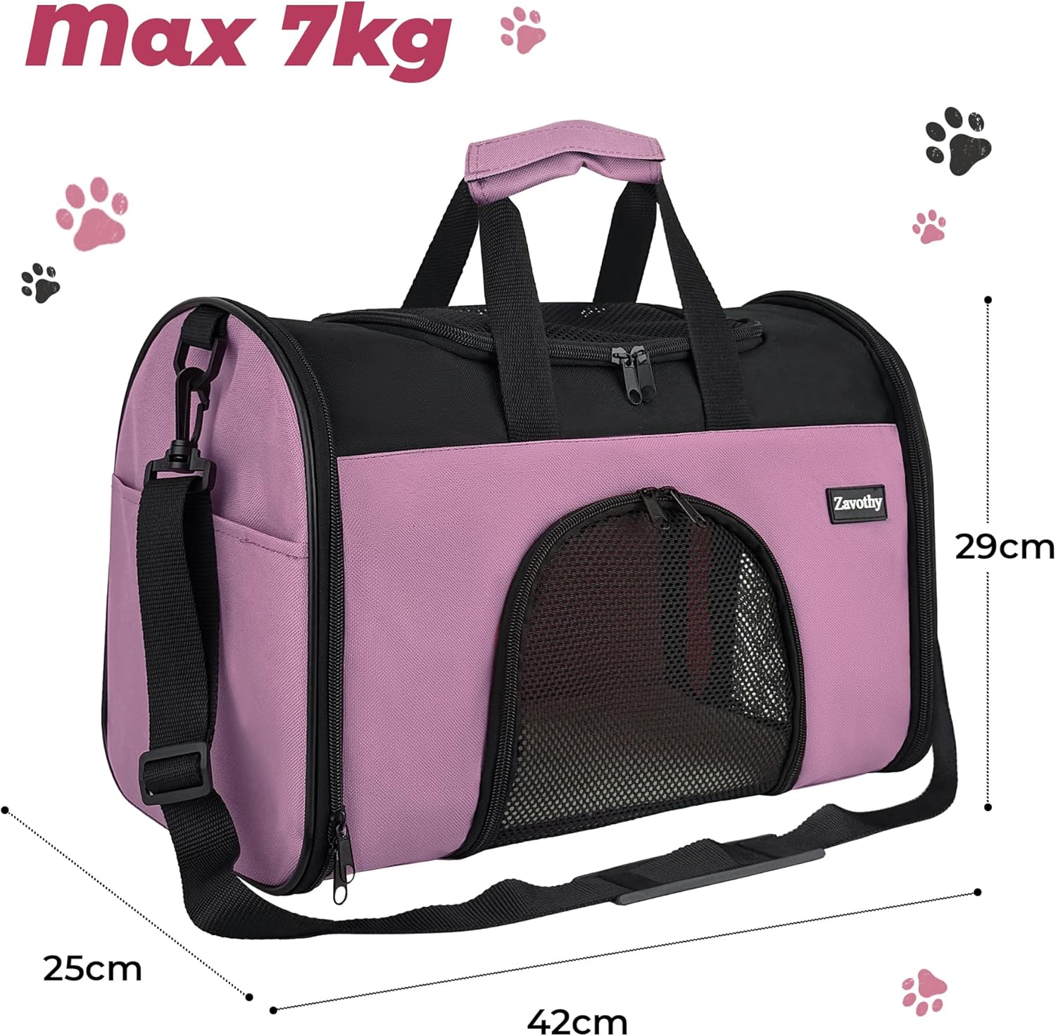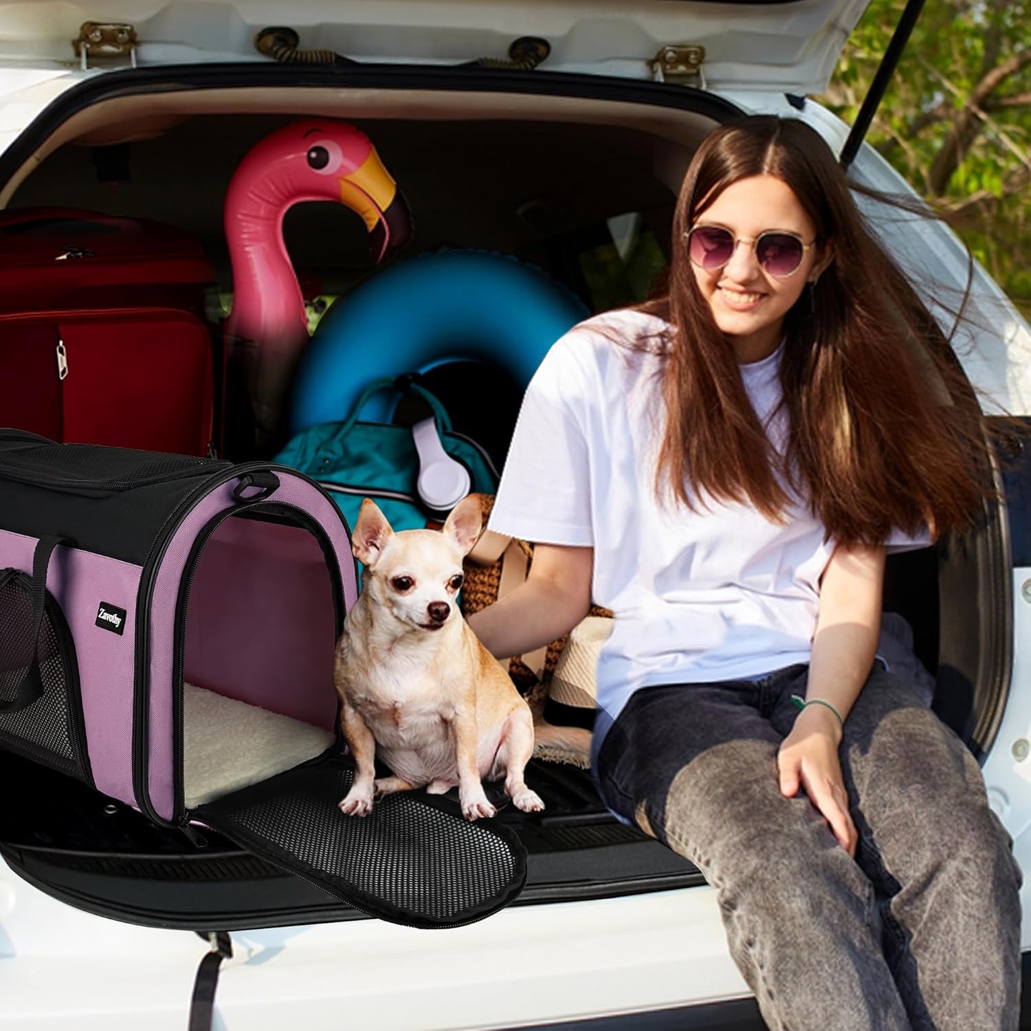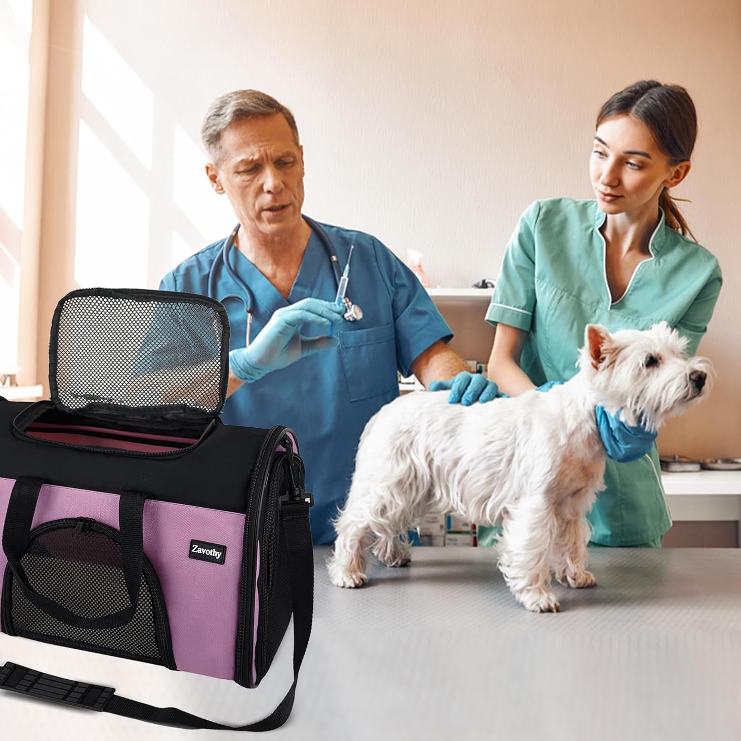 Чанта за транспортиране на котки и кучета Zavothy, дишаща и сгъваема кутия за транспортиране на котки с регулируема презрамка, подвижен плюшен матрак (лилава, S)