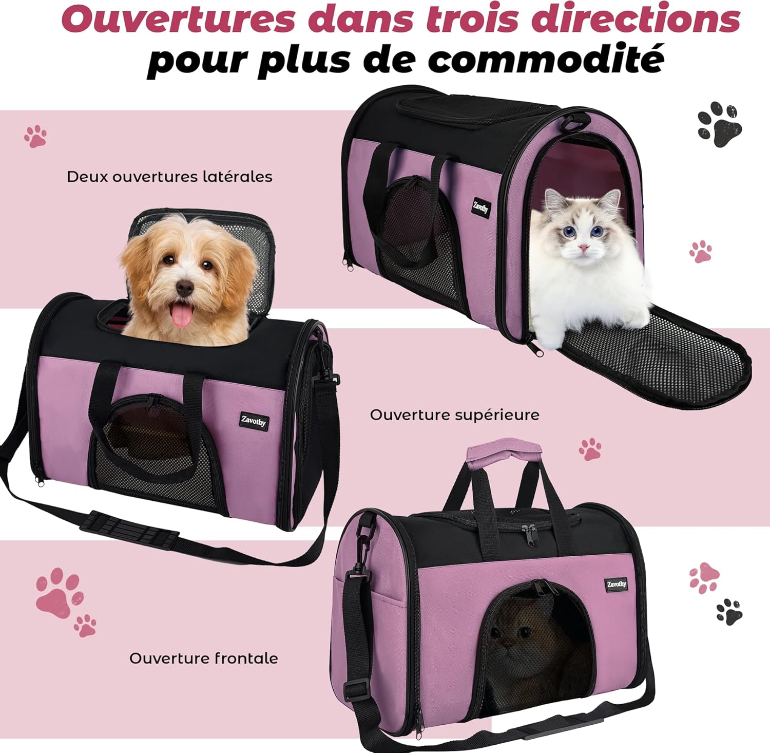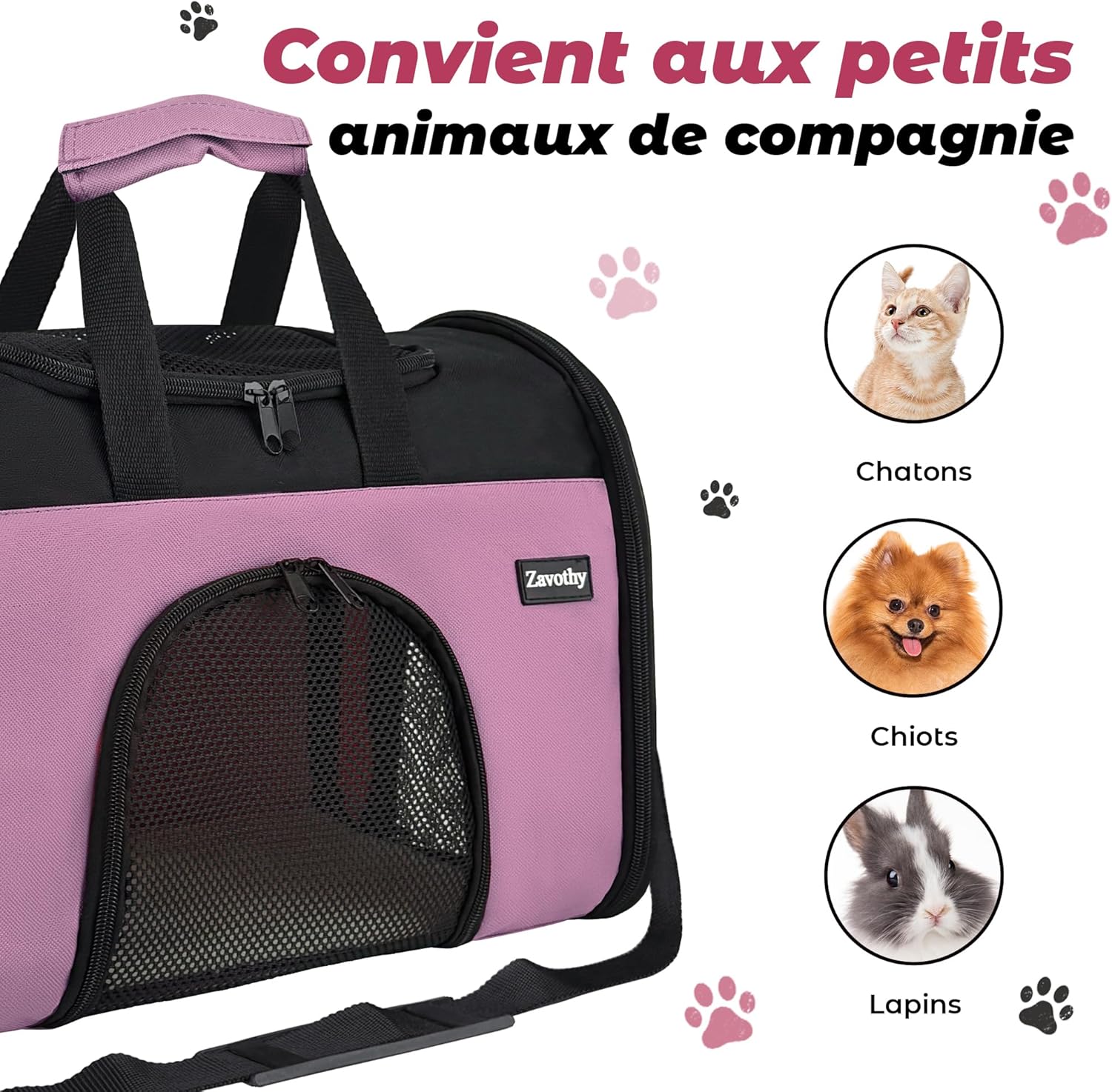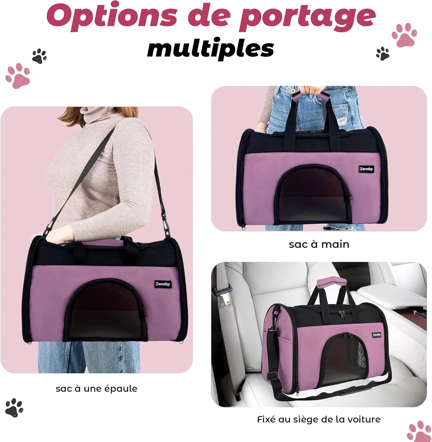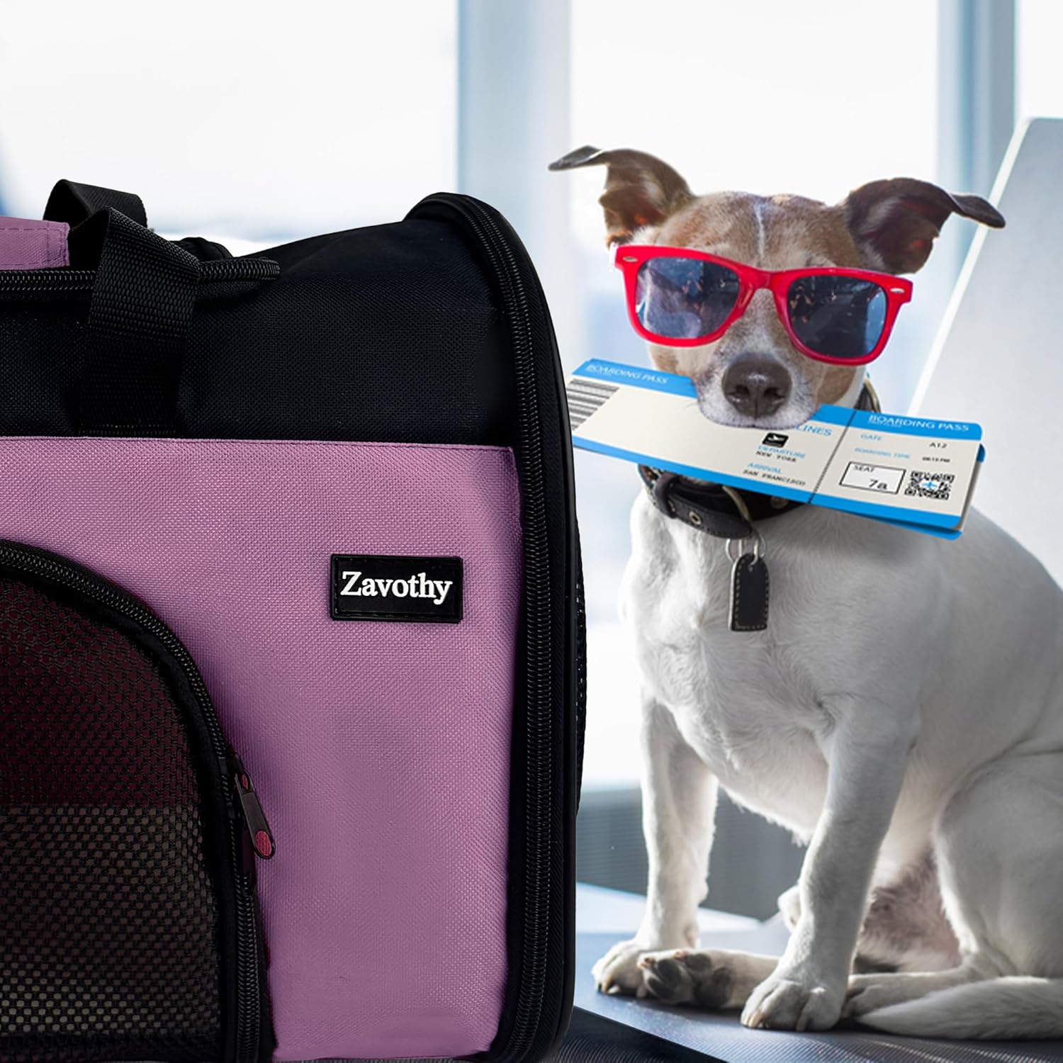 Чанта за транспортиране на котки и кучета Zavothy, дишаща и сгъваема кутия за транспортиране на котки с регулируема презрамка, подвижен плюшен матрак (лилава, S)