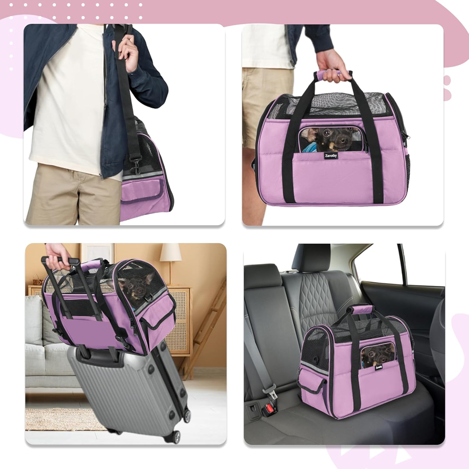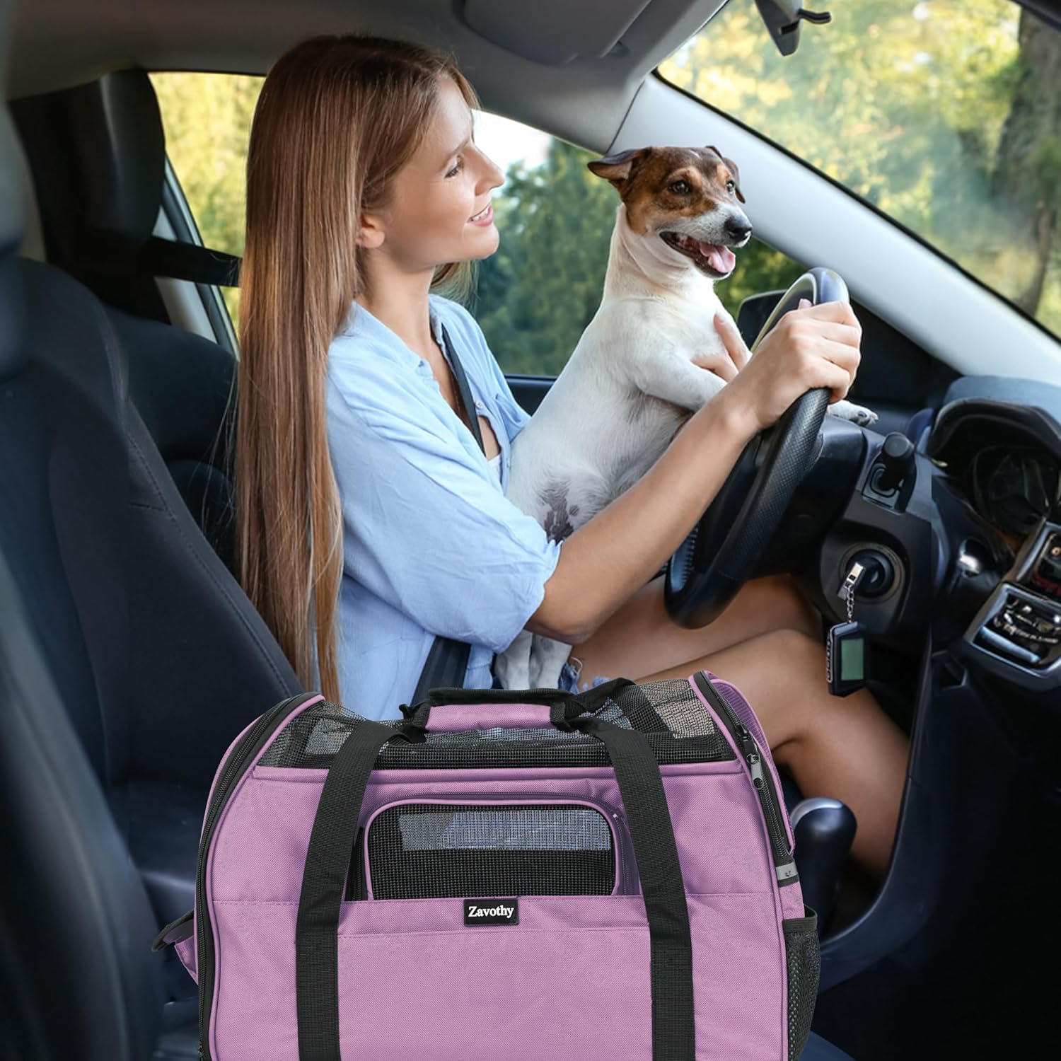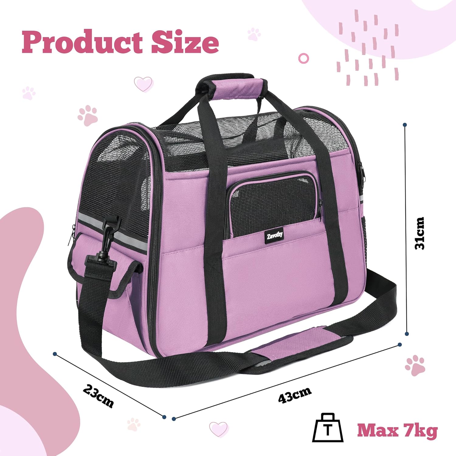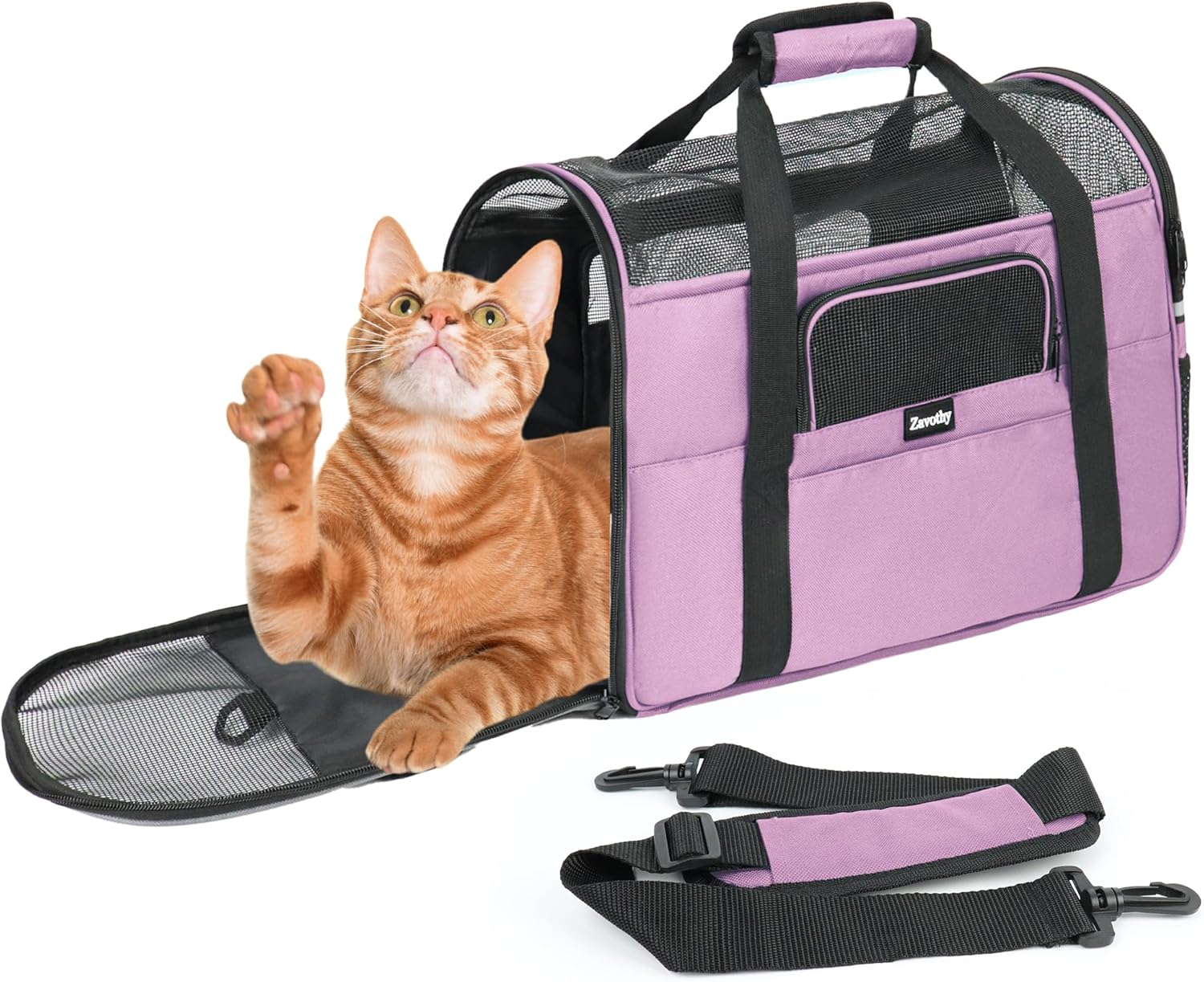 Чанта за транспортиране на кучета Zavothy Cat, дишаща и сгъваема кутия за транспортиране на котки с регулируема презрамка, подвижен плюшен матрак (лилава, M)