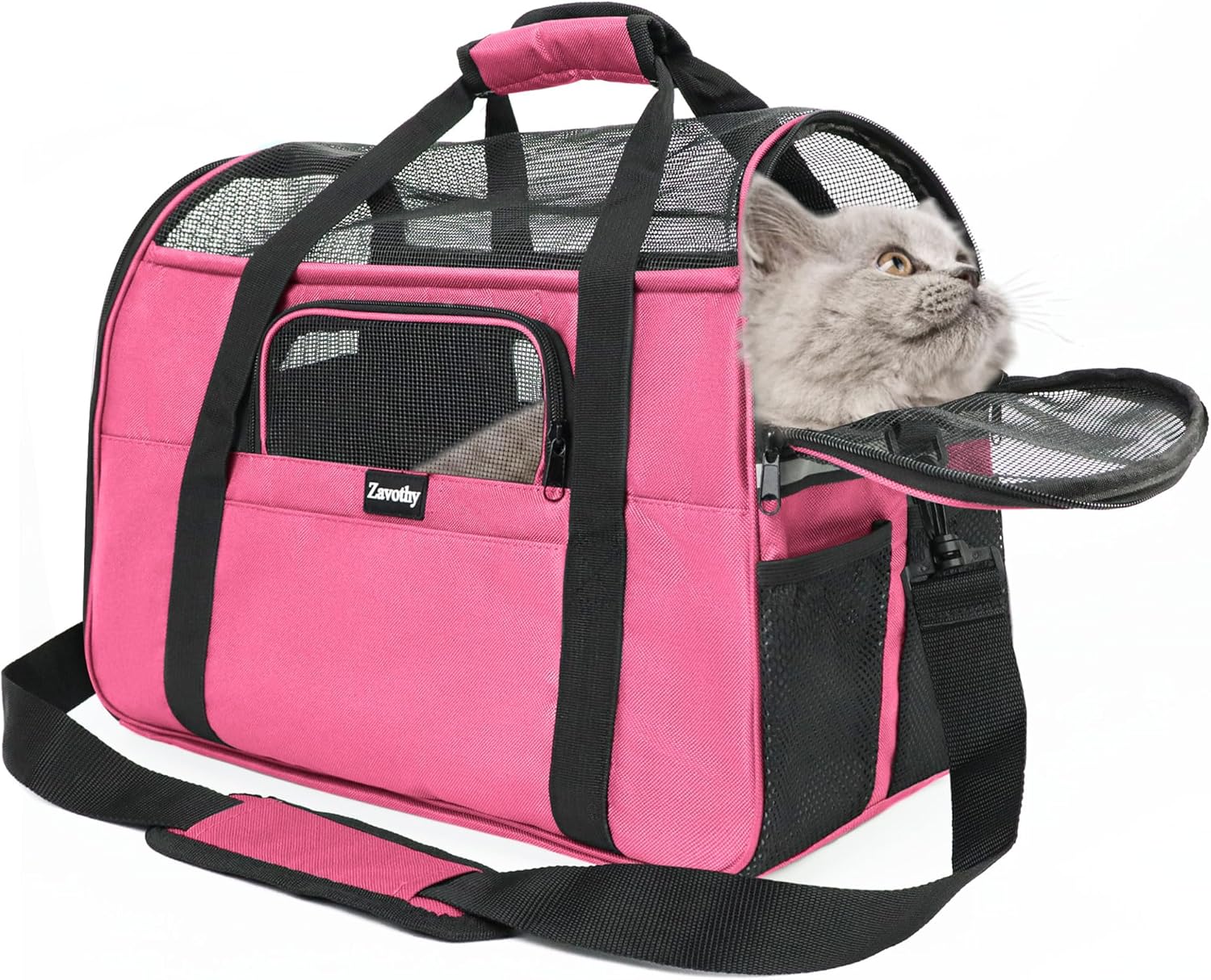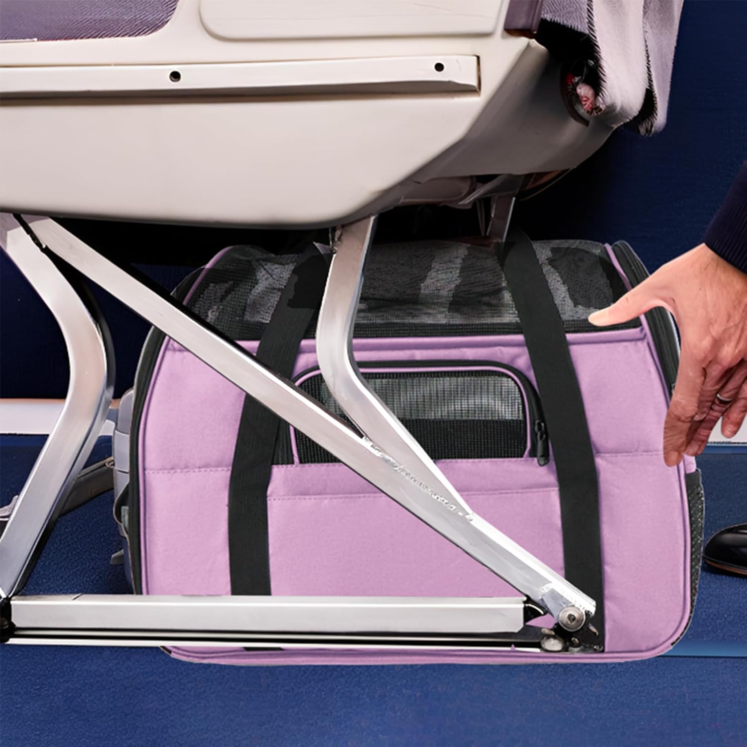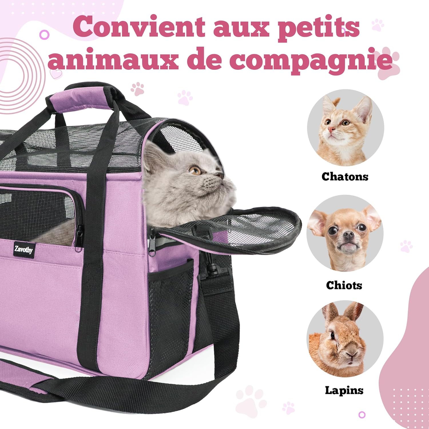 Чанта за транспортиране на кучета Zavothy Cat, дишаща и сгъваема кутия за транспортиране на котки с регулируема презрамка, подвижен плюшен матрак (лилава, M)