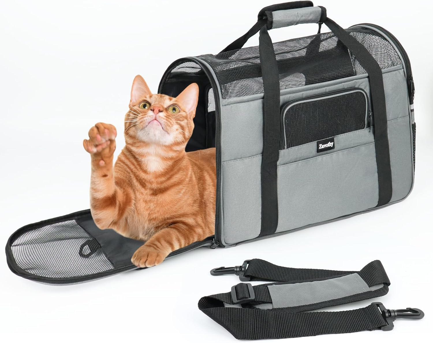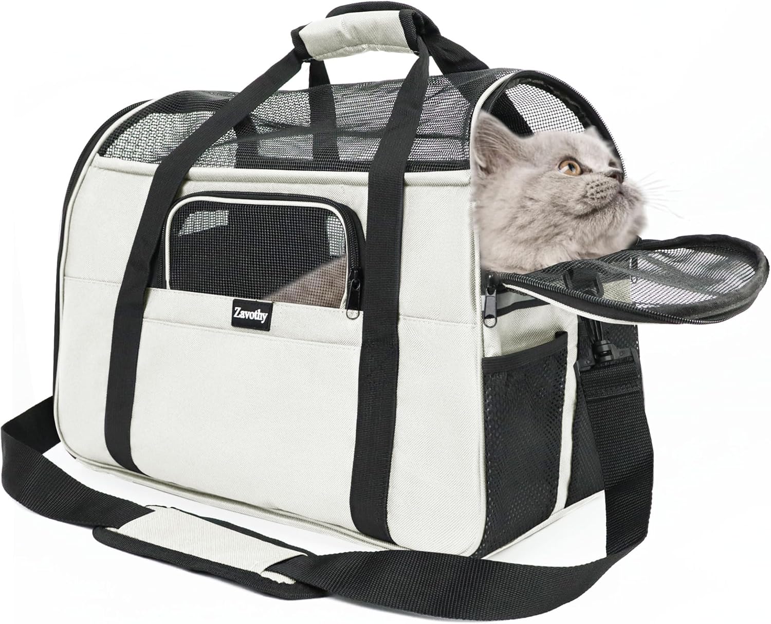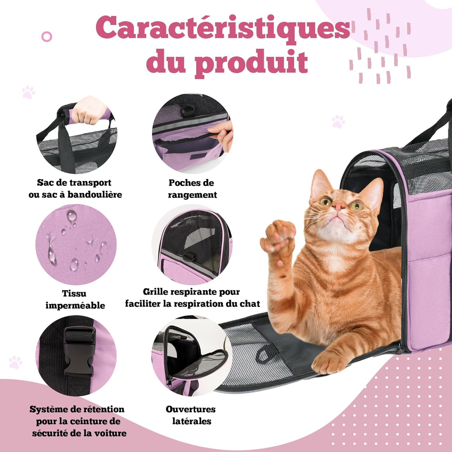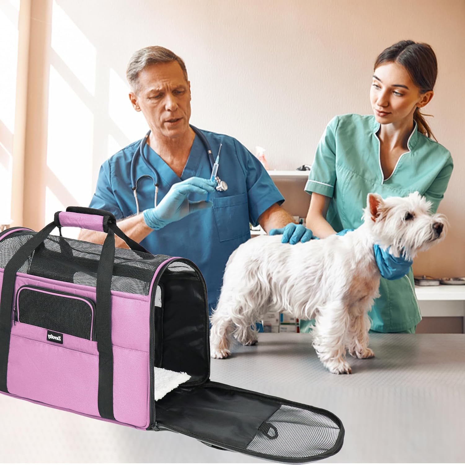 Чанта за транспортиране на кучета Zavothy Cat, дишаща и сгъваема кутия за транспортиране на котки с регулируема презрамка, подвижен плюшен матрак (лилава, M)