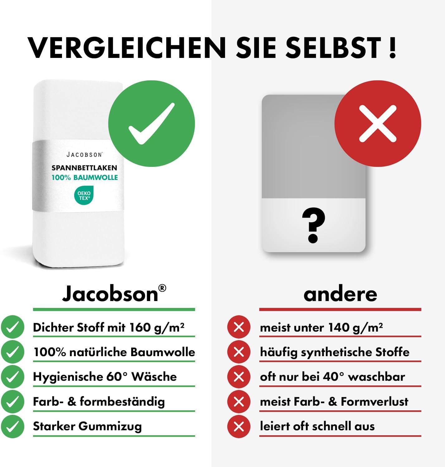 • Чаршаф с пълнеж Jacobson Basic: марката Jacobson е символ на най-високите стандарти за качество, усещане и естетика. Чаршафите с пълнеж с размер 180 x 200 см - 200 x 200 см са подходящи за матраци с височина на основата до 23 см.
