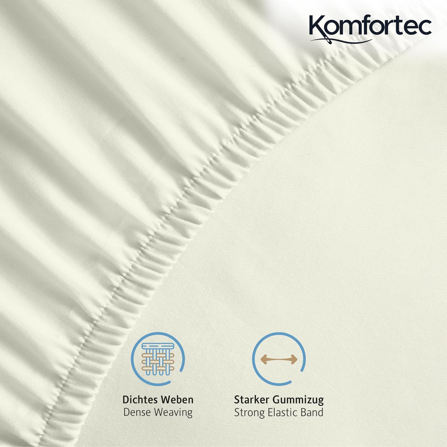 Благодарение на перфектната си форма и елегантен външен вид, чаршафите с пристягане Komfortec пасват идеално на вашето легло. Пасват идеално на всички легла с ширина между 15-25 см.