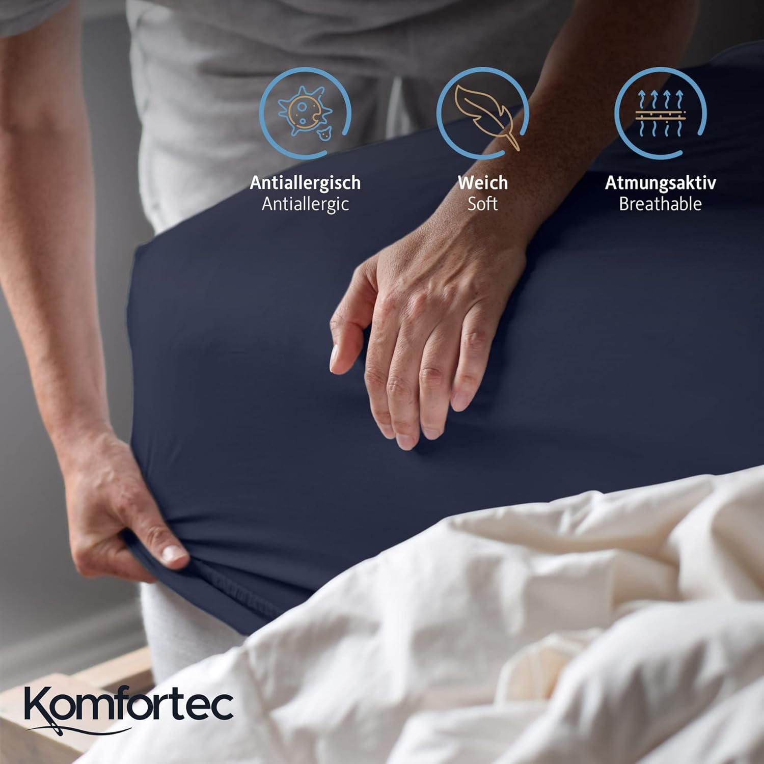 Благодарение на перфектната си форма и елегантен външен вид, чаршафите с пристягане Komfortec пасват идеално на вашето легло. Пасват идеално на всички легла с ширина между 15-25 см.