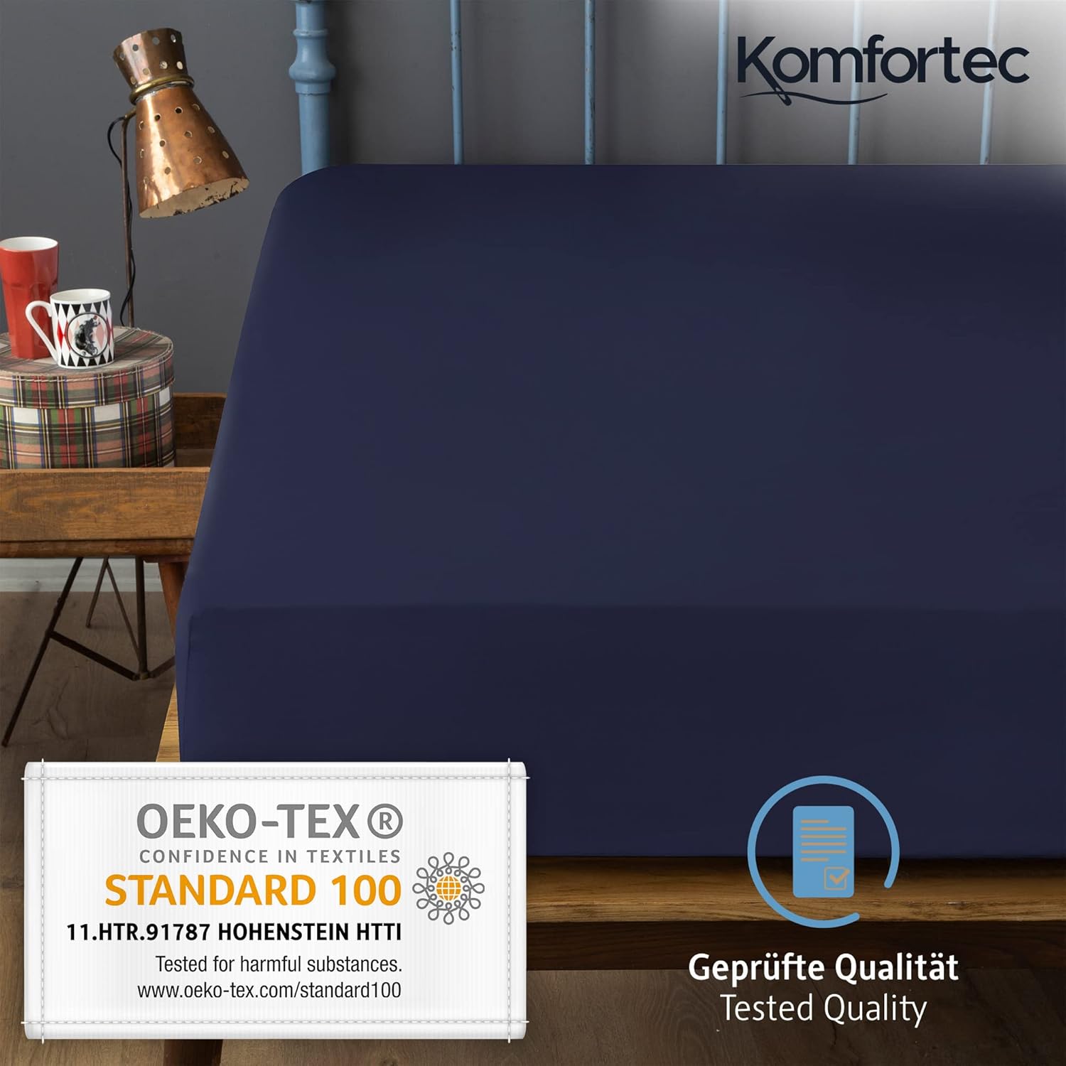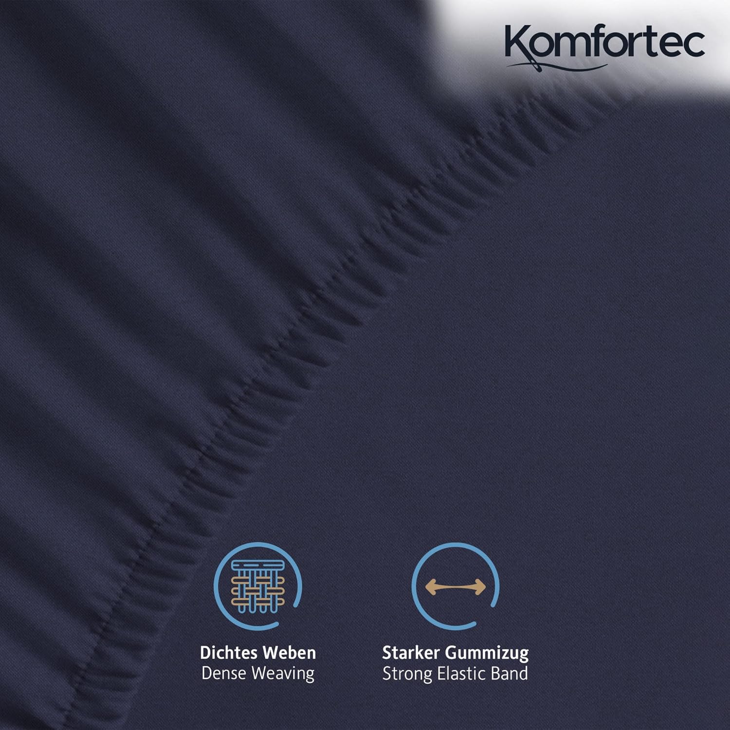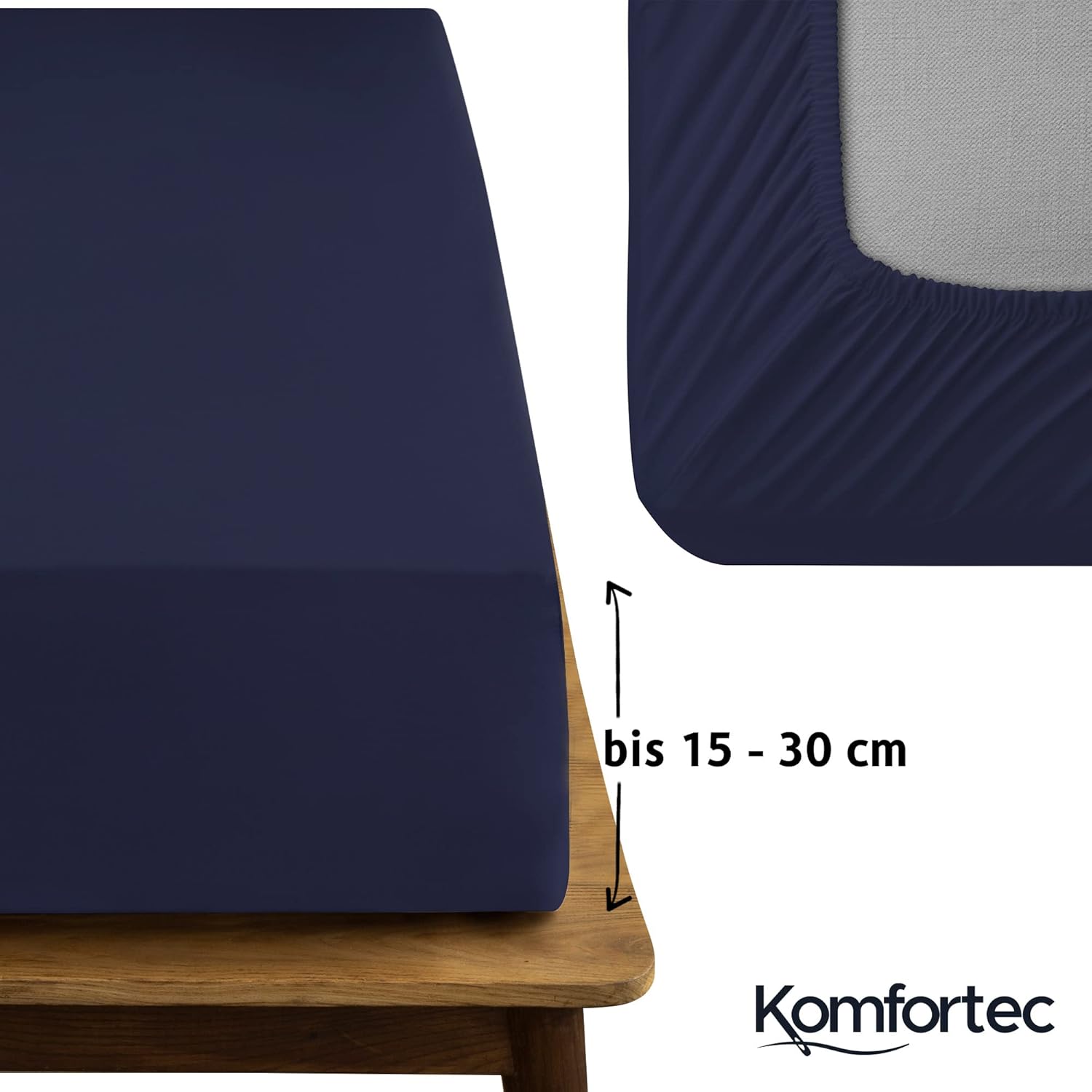 Благодарение на перфектната си форма и елегантен външен вид, чаршафите с пристягане Komfortec пасват идеално на вашето легло. Пасват идеално на всички легла с ширина между 15-25 см.