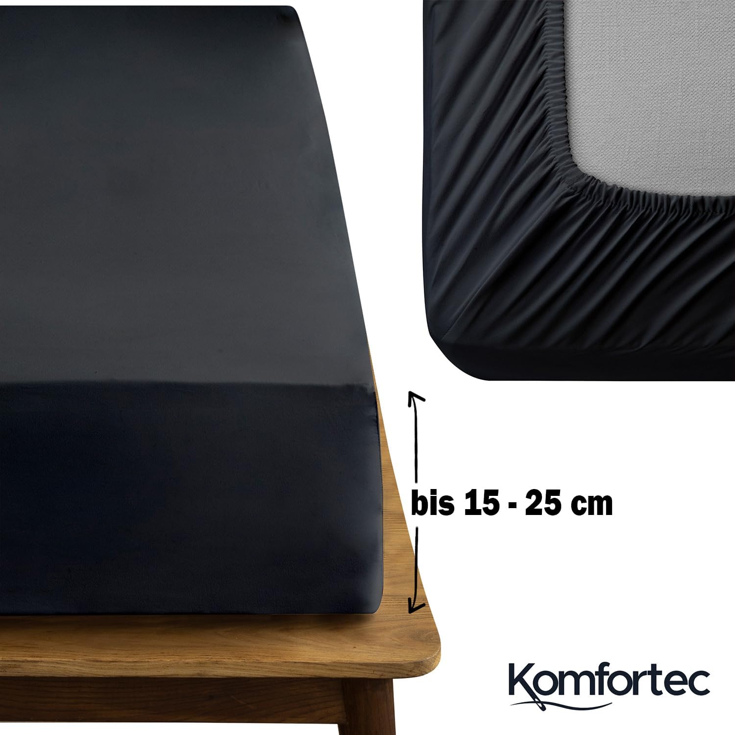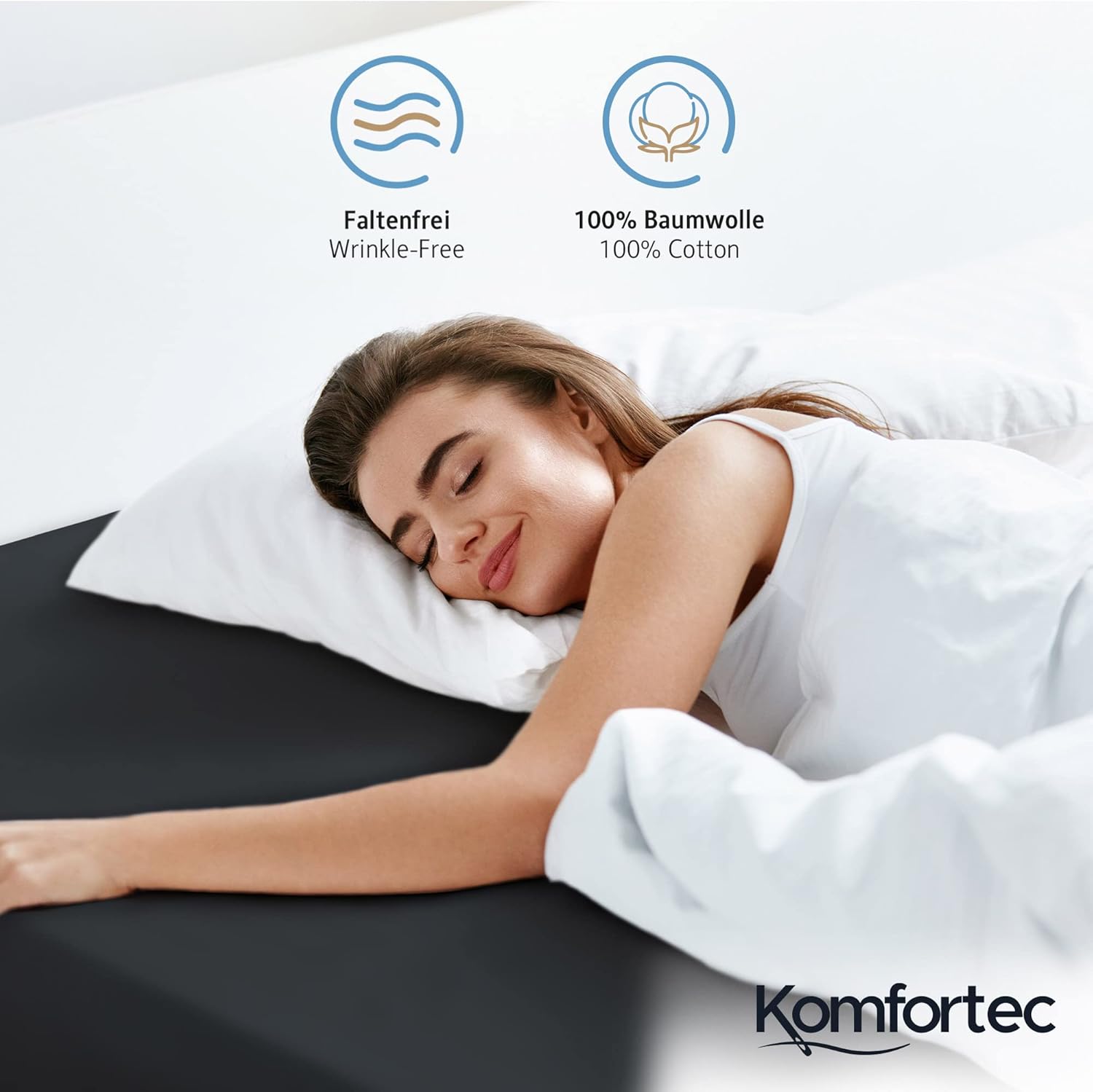 Благодарение на перфектната си форма и елегантен външен вид, чаршафите с пристягане Komfortec пасват идеално на вашето легло. Пасват идеално на всички легла с ширина между 15-25 см.