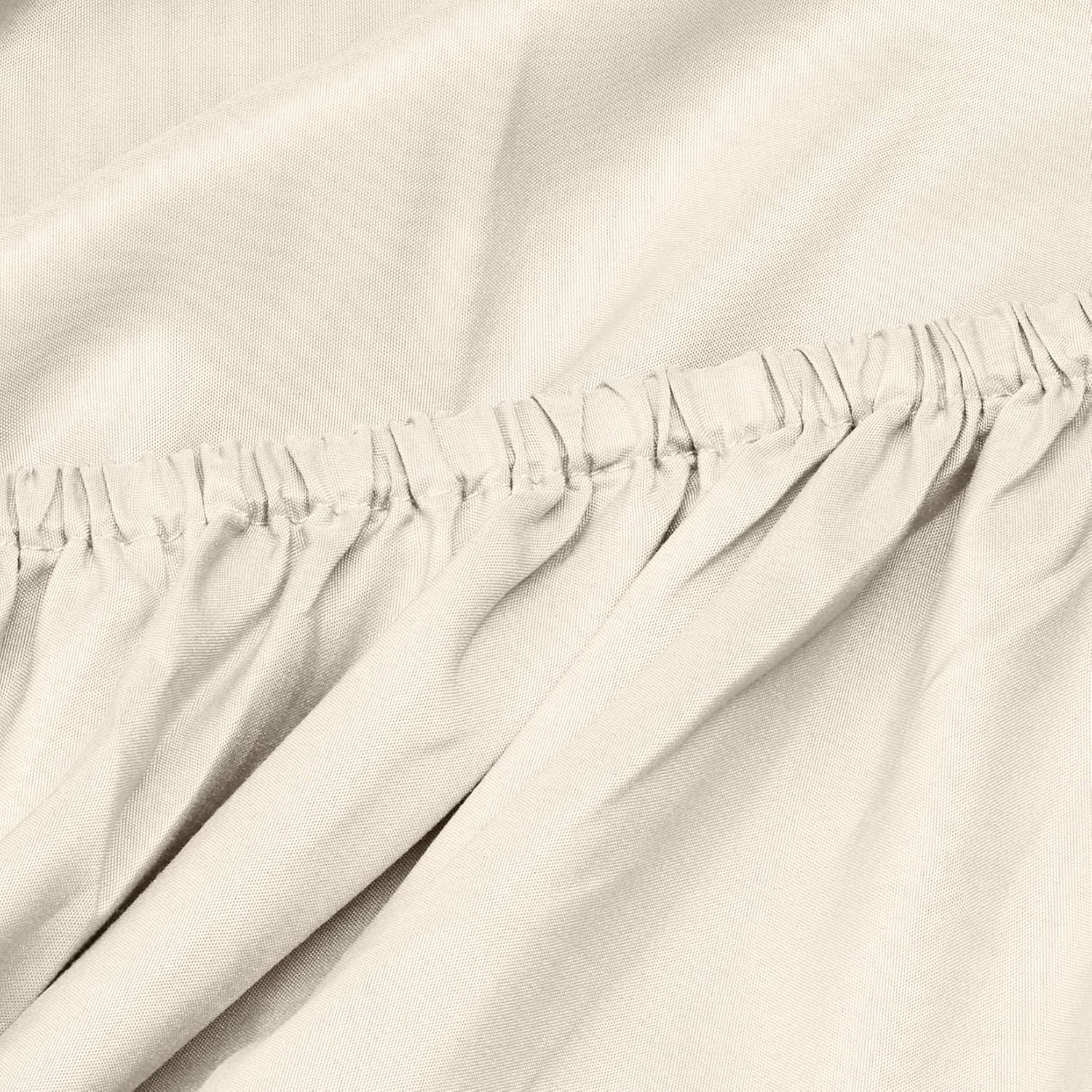• Дълбоко изрязване и еластичен ръб: плосък чаршаф Super King size от всички страни с ластик и 30 см дълбок джоб, който осигурява сигурно прилягане към матрака без изместване.