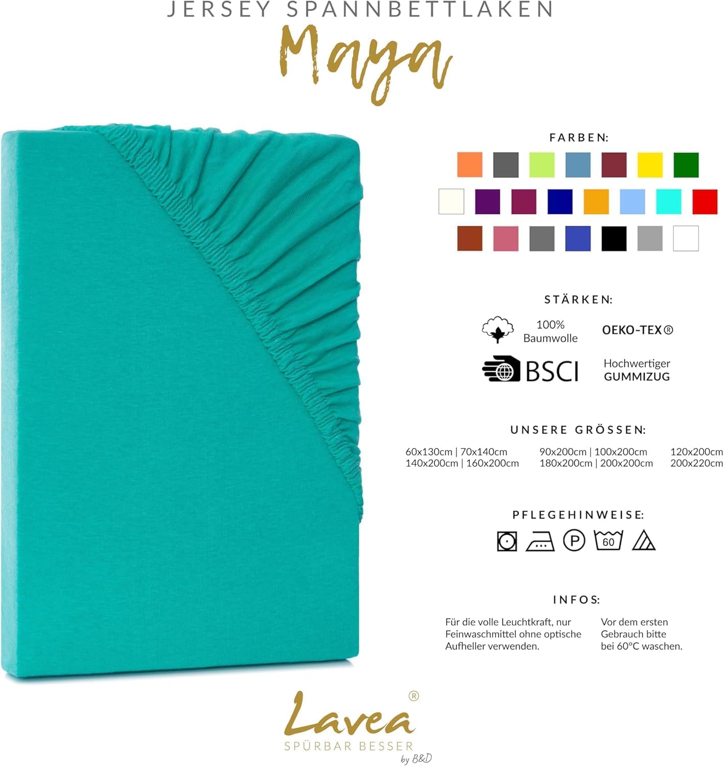 Името Lavea е символ на най-високите стандарти за качество, комфорт, дизайн и издръжливост. Серията чаршафи Maya е изплетена от 100% кардиран памук и е надеждна за спане.