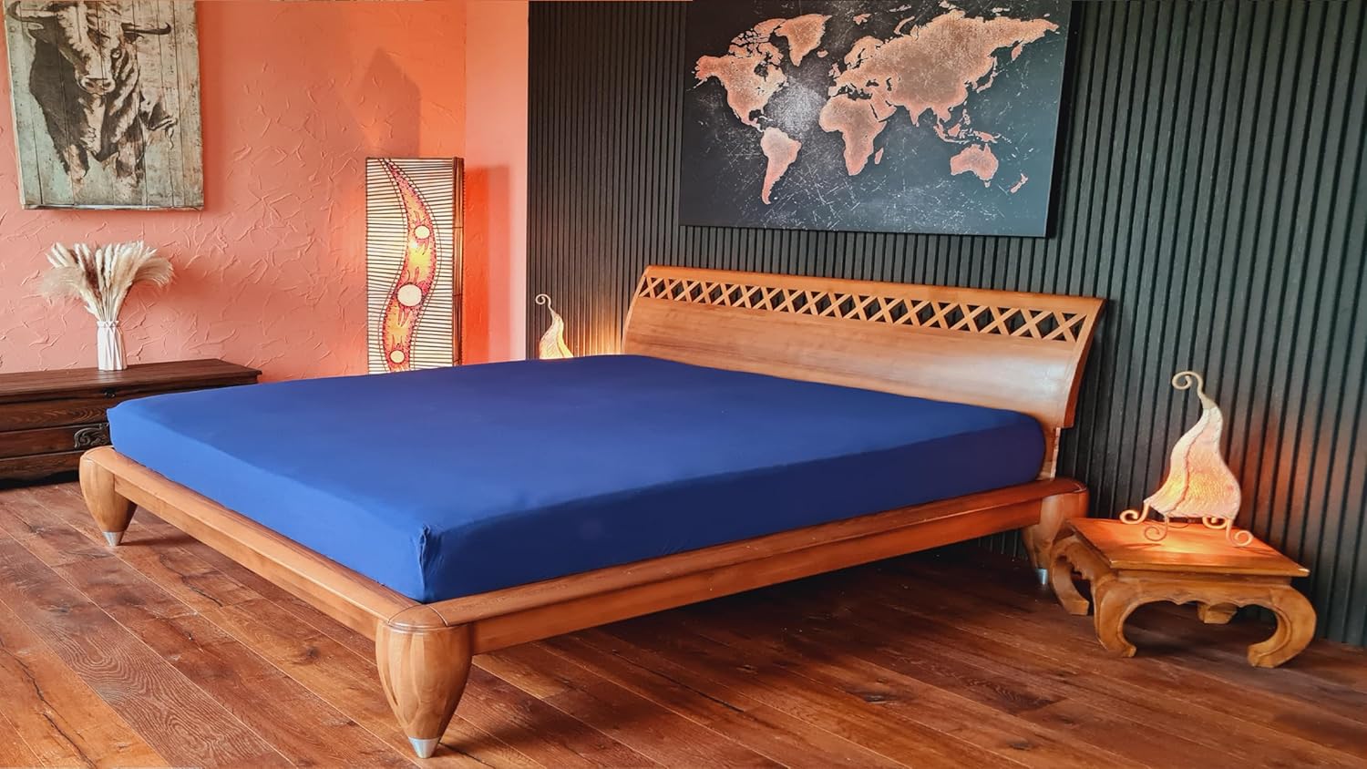 • Размер: памучен чаршаф с еластична материя с размери 180 x 200 до 200 x 220 см с екстра висок мост (40 см) - подходящ за водни легла, легла с пружинна основа и всички матраци с височина до 35 см с размери 180 x 200, 180 x 210, 180 x 220, 200 x 200 000, 200 x 210 и 200x220