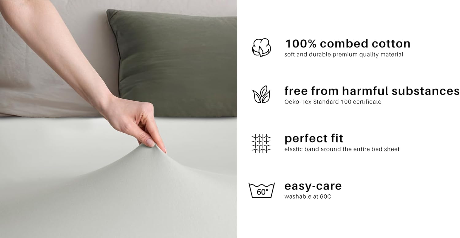 • Чаршаф от Джърси: Колекция Амбър. Oeko-Tex Standard 100.