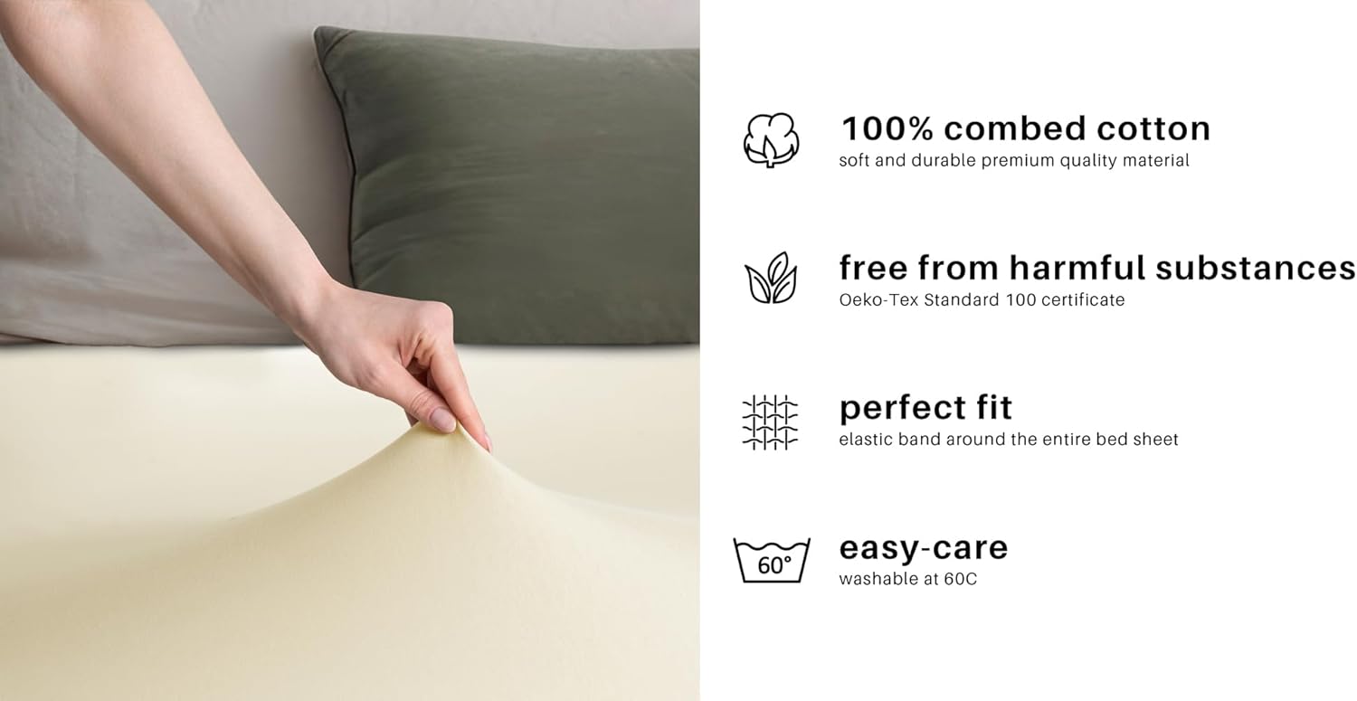 • Чаршаф от Джърси: Колекция Амбър. Oeko-Tex Standard 100.