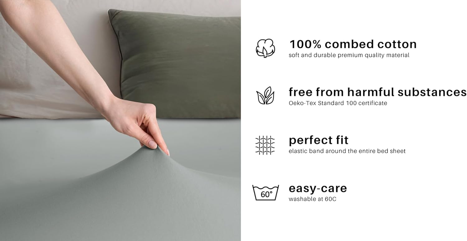 • Чаршаф от Джърси: Колекция Амбър. Oeko-Tex Standard 100.
