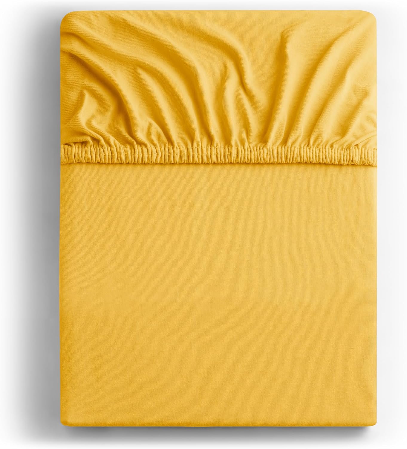Чаршаф с меланж DecoKing, 100% памучен джърси, пружинен, бял, кехлибарен, колекция