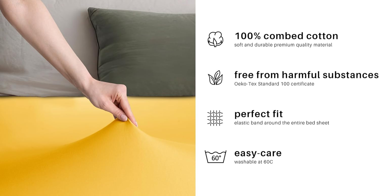 • Чаршаф от Джърси: Колекция Амбър. Oeko-Tex Standard 100.