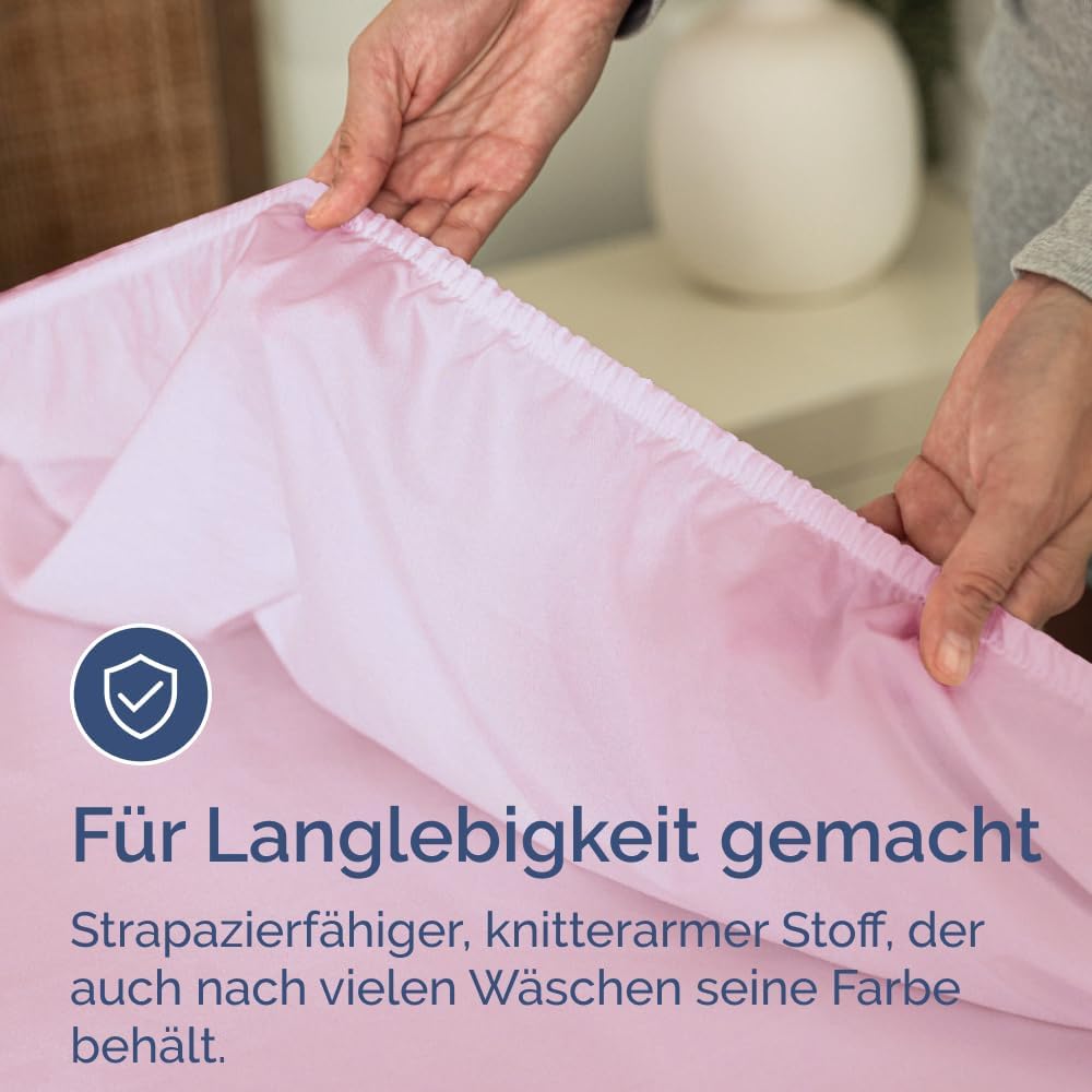 Чаршаф с пълнеж 120 x 200 см - Изключително дебел чаршаф с пълнеж за матраци с височина до 40 см (16 инча) - Мек четкан микрофибър - Не се намачква, свива се и оцветява - Oeko-Tex - Светло розово легло