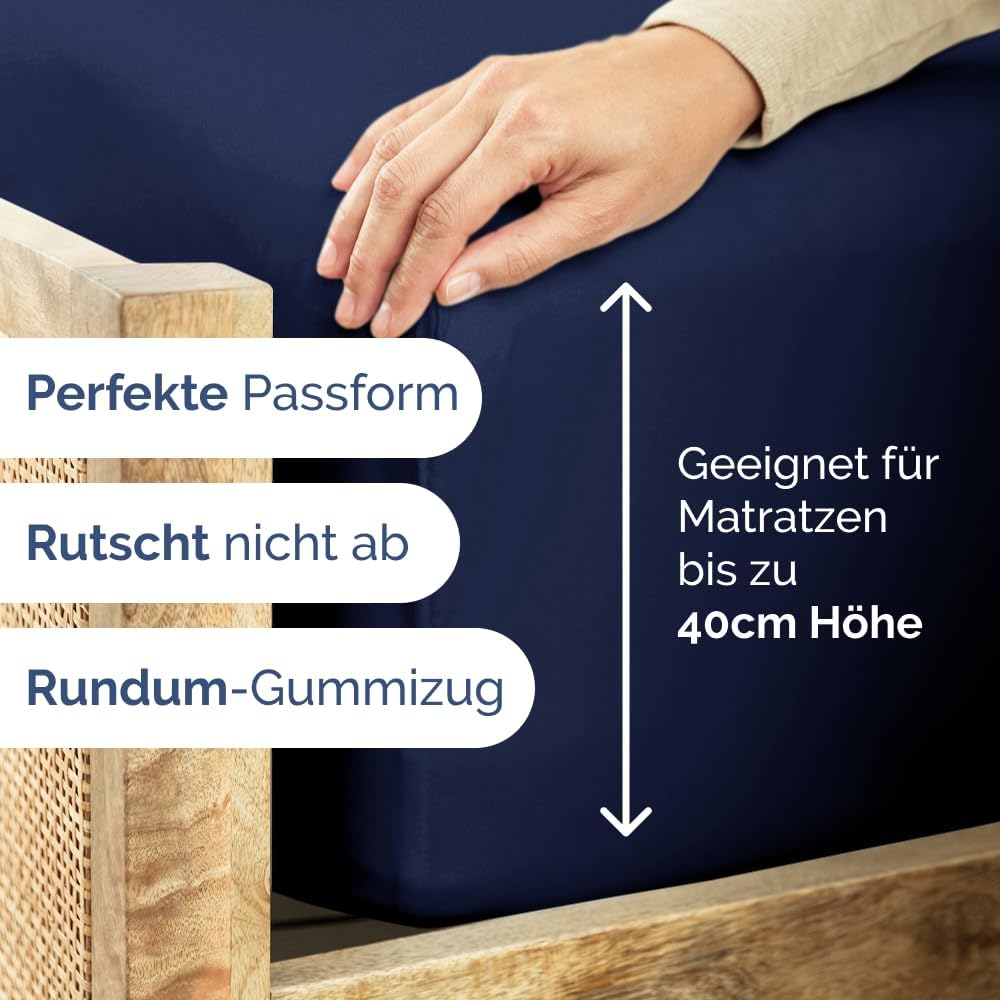 Чаршаф с пълнеж 120 x 200 см - Изключително дебел чаршаф с пълнеж за матраци с височина до 40 см (16 инча) - Мек четкан микрофибър - Не се намачква, свива се и оцветява - Oeko-Tex - Тъмносин чаршаф