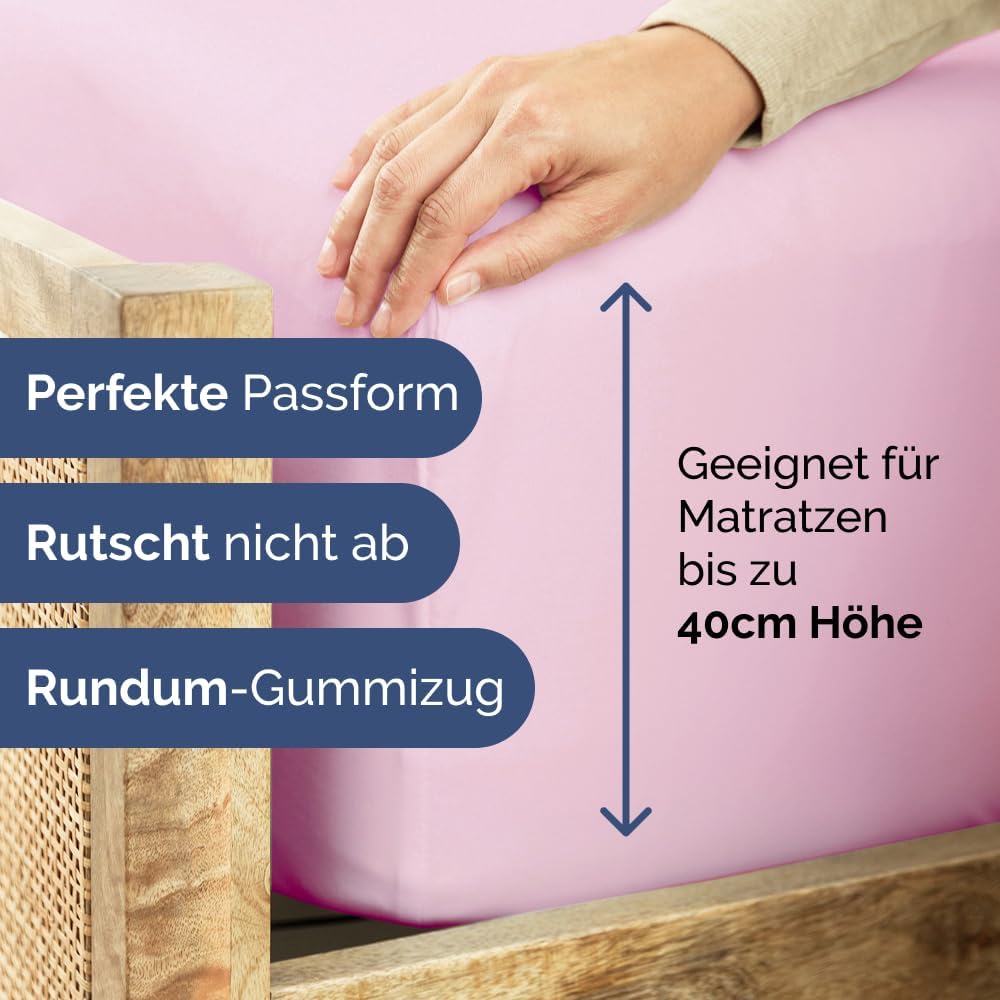 Чаршаф с пълнеж 140 x 200 см - Изключително дебел чаршаф с пълнеж за матраци с височина до 40 см (16 инча) - Мек четкан микрофибър - Не се намачква, свива се и оцветява - Oeko-Tex - Светло розово легло