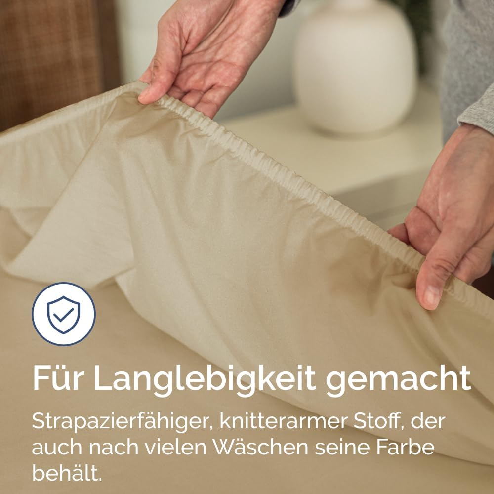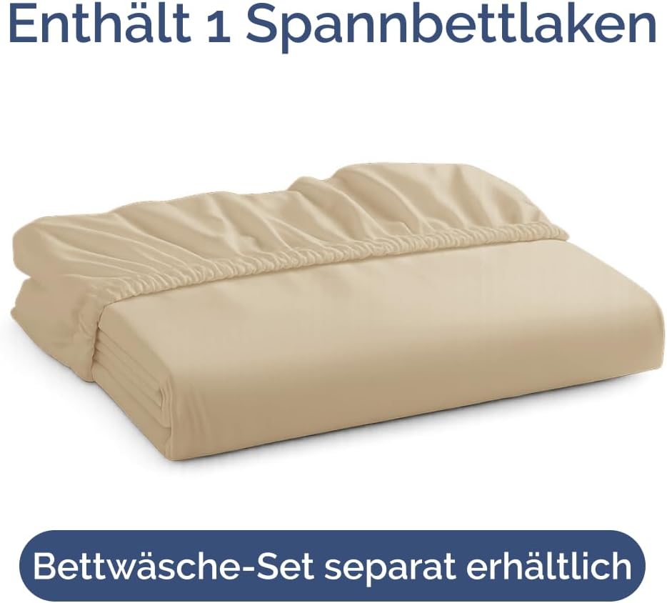 Чаршаф с пълнеж 180 x 200 см - Изключително дебел чаршаф с пълнеж за матраци с височина до 40 см (16 инча) - Мек четкан микрофибър - Не се намачква, свива се и оцветява - Oeko-Tex - Бежов чаршаф