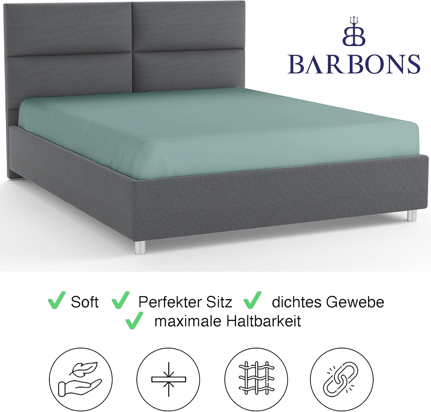 • Нежен към кожата: Без сърбеж, без драскане - чаршафът Barbons е тестван за нежност към кожата и вредни вещества и затова е идеален като чаршаф за комфортен сън.