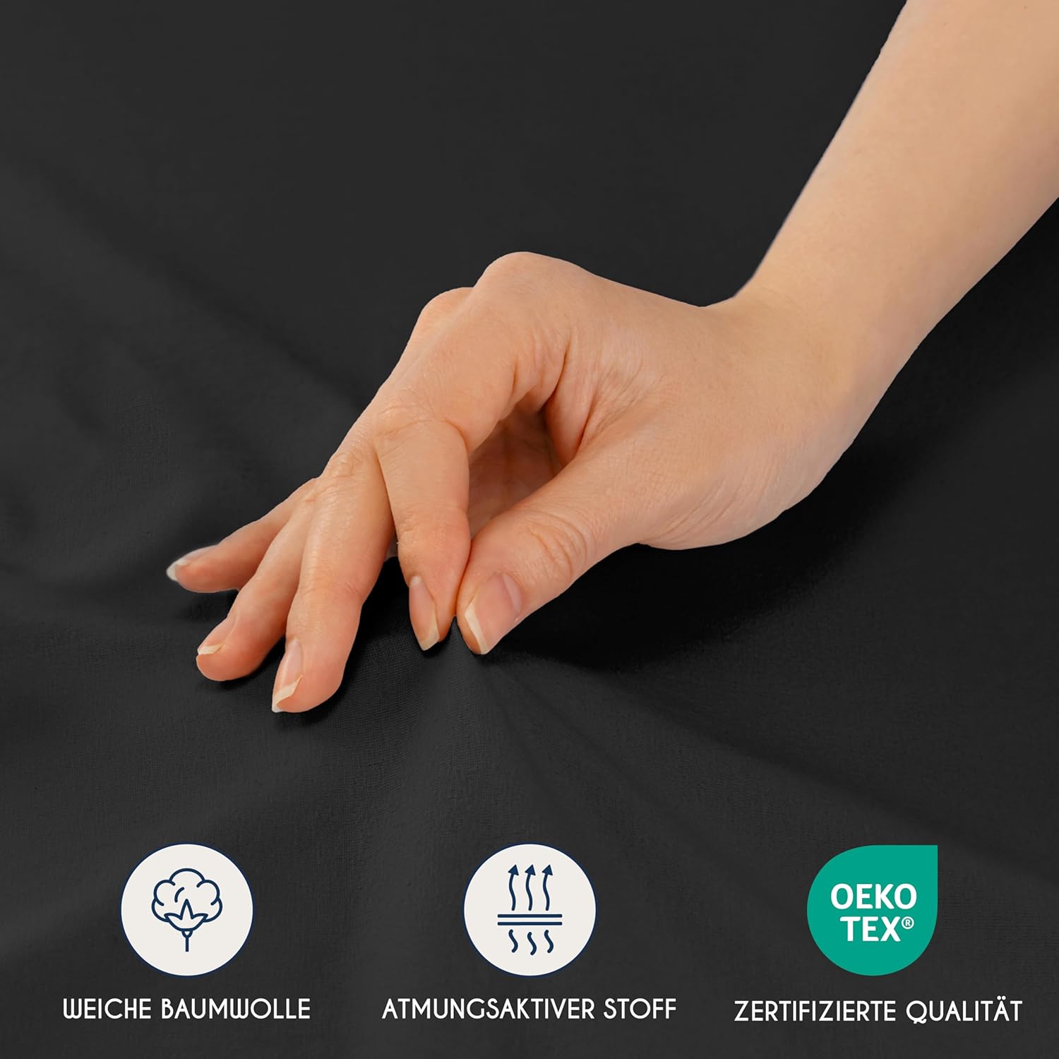 Чаршаф с пълнеж Dreamzie, 180 x 200 x 27 см - 100% памук Джърси 150 г/м², сертифициран по Oeko-Tex® - черен - за матраци с размери 22 x 180 x 200 x 27 см