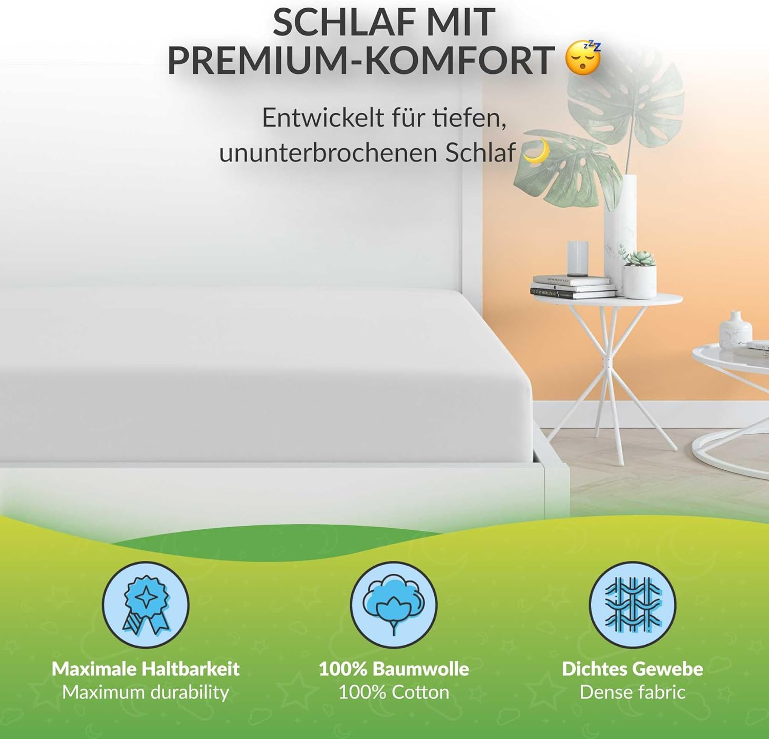 Чаршаф с пълнеж etérea Jersey, 100% сертифициран памук Oeko-Tex за матраци с дълбочина до 25 см, 100 x 200 см, 120 x 200 см, бял