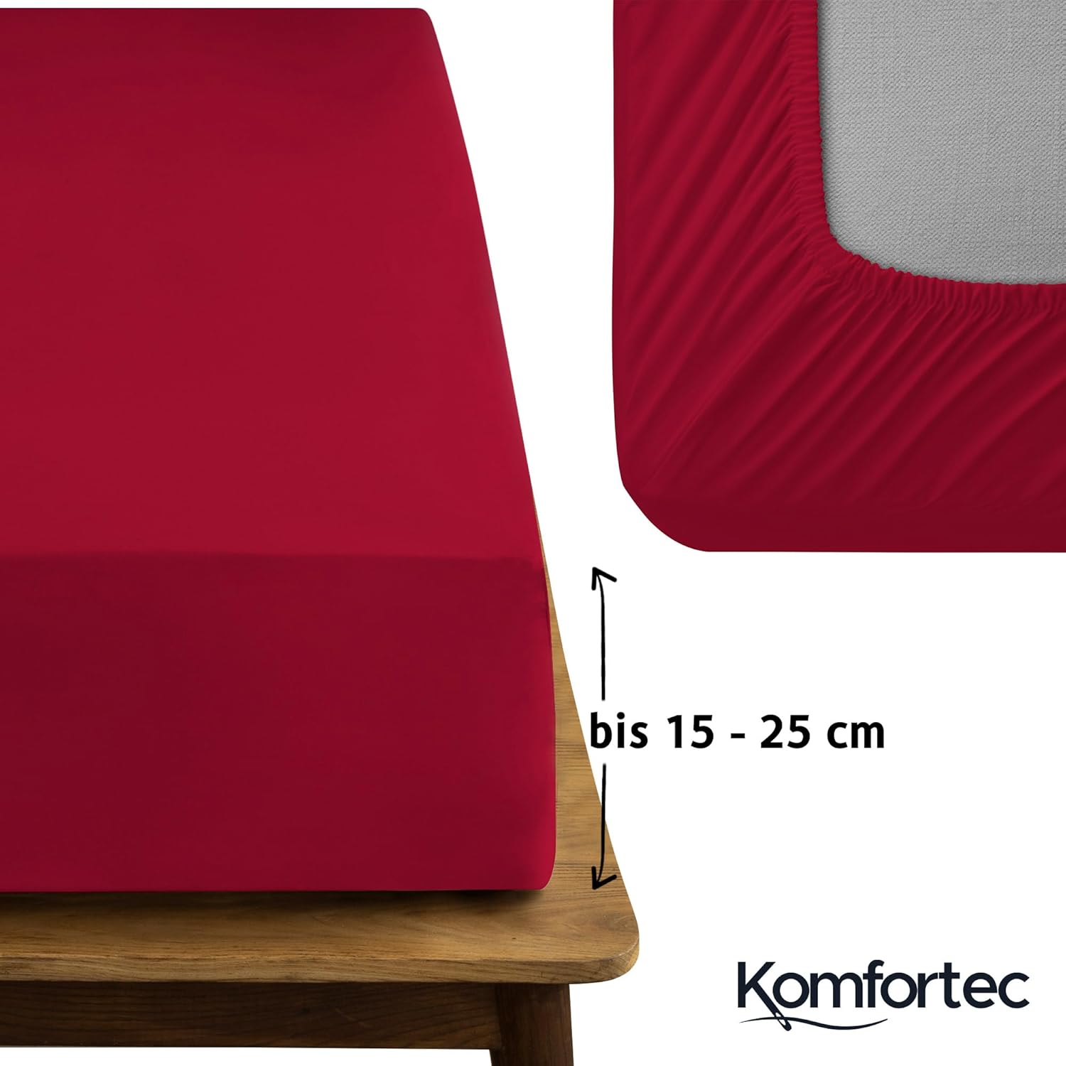 Благодарение на перфектната си форма и елегантен външен вид, чаршафите с пристягане Komfortec пасват идеално на вашето легло. Пасват идеално на всички легла с ширина между 15-25 см.