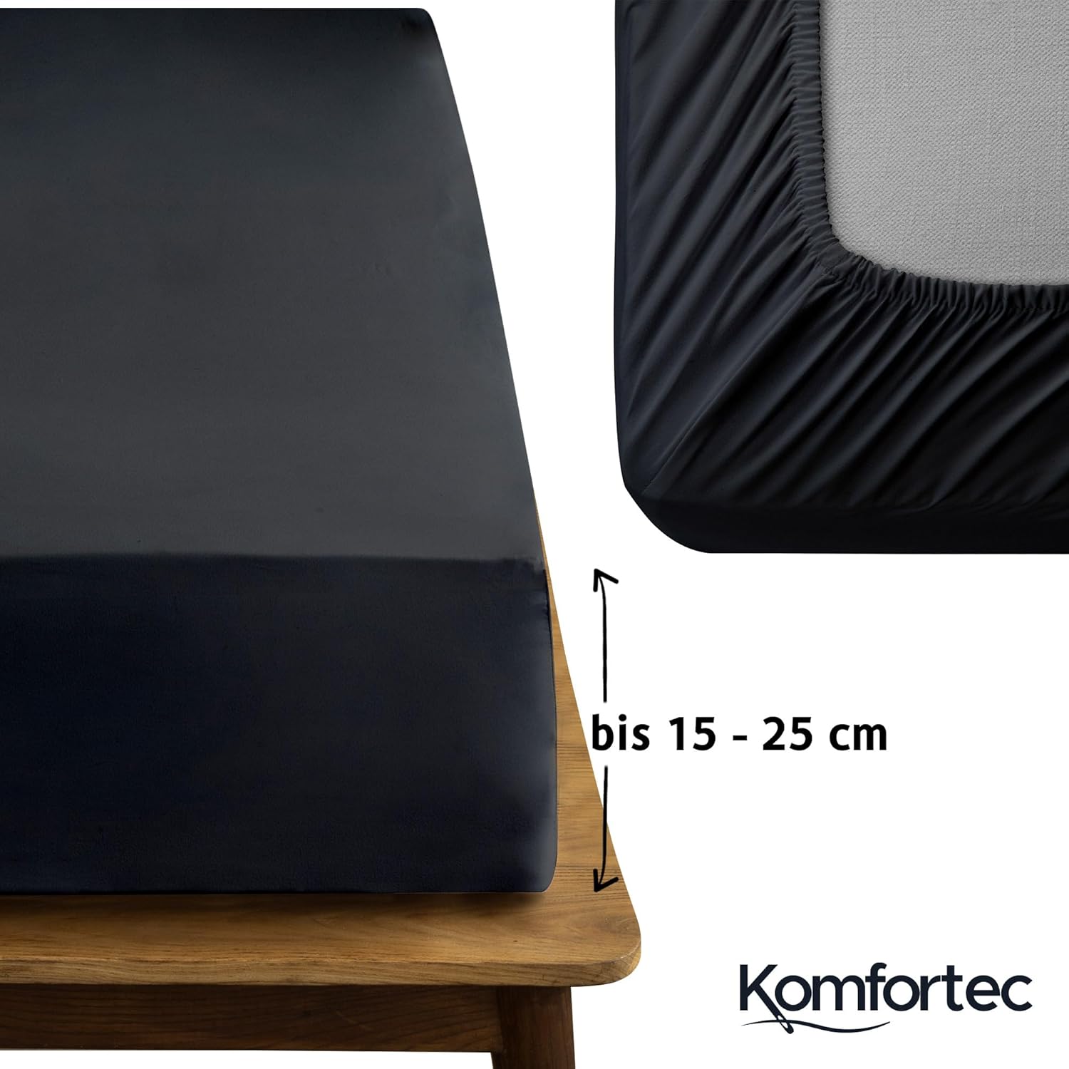 Благодарение на перфектната си форма и елегантен външен вид, чаршафите с пристягане Komfortec пасват идеално на вашето легло. Пасват идеално на всички легла с ширина между 15-25 см.
