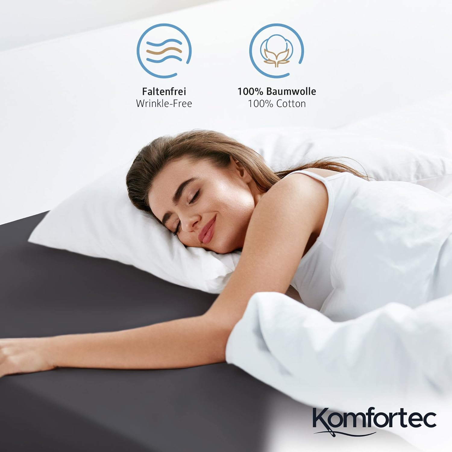 Благодарение на перфектната си форма и елегантен външен вид, чаршафите с пристягане Komfortec пасват идеално на вашето легло. Пасват идеално на всички легла с ширина между 15-25 см.