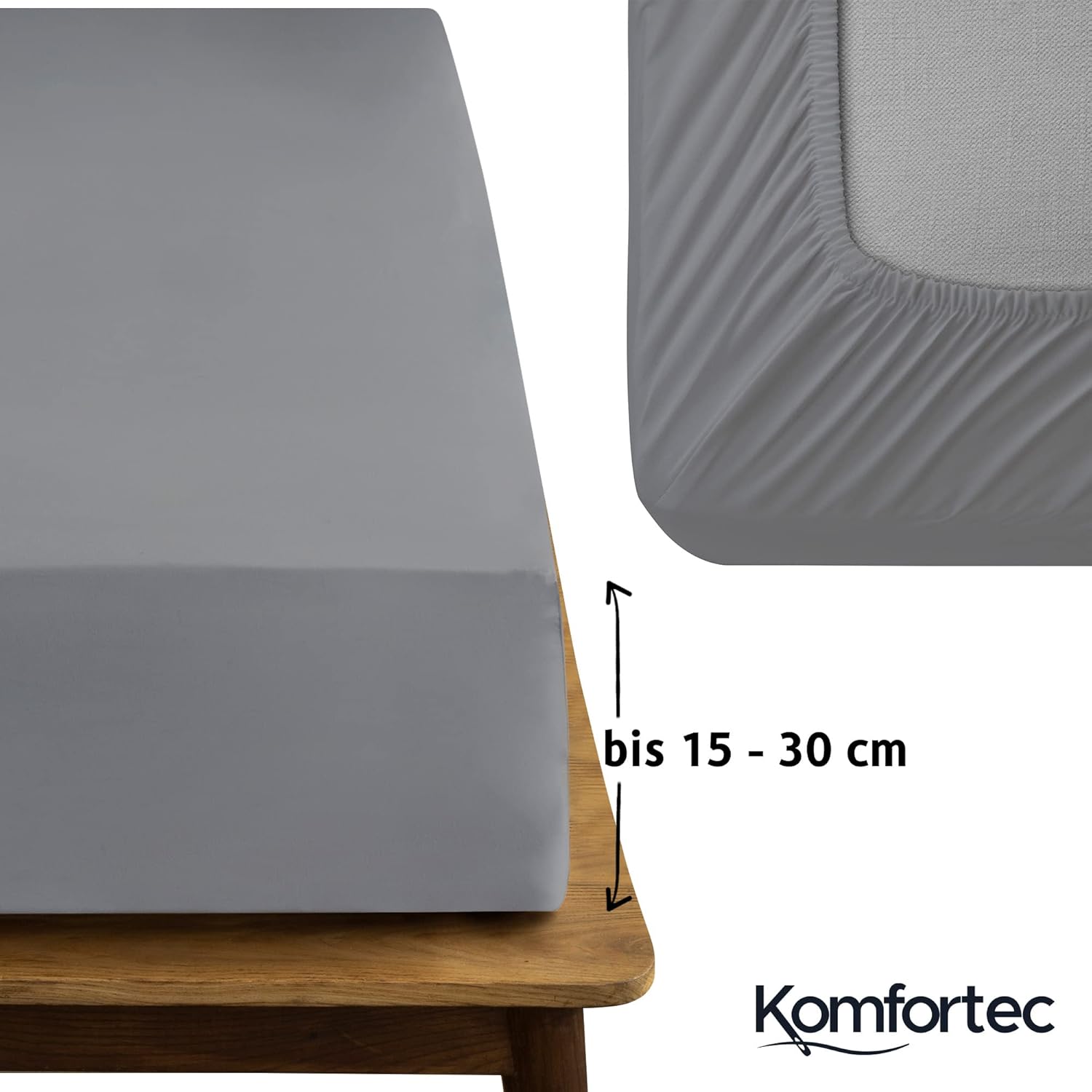Благодарение на перфектната си форма и елегантен външен вид, чаршафите с пристягане Komfortec пасват идеално на вашето легло. Пасват идеално на всички легла с ширина между 15-25 см.