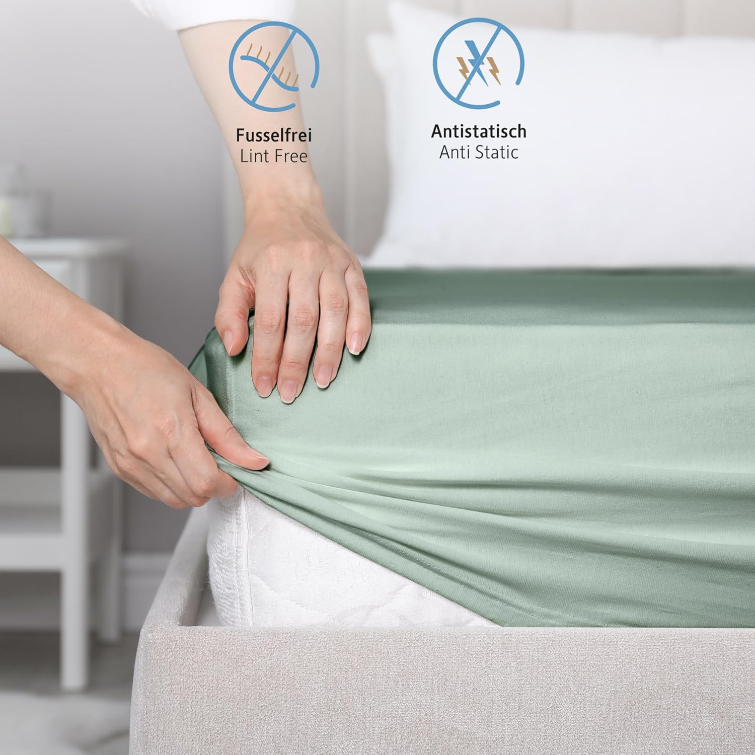 Чаршафите Komfortec с антистатичните си свойства помагат за заземяване на статичното електричество в тялото ви по време на сън. По този начин се елиминират негативните ефекти върху тялото ви по време на сън, предотвратяват нарушенията на съня, причинени от стрес и статично електричество, и ви позволяват да започнете деня си пълни с енергия.
