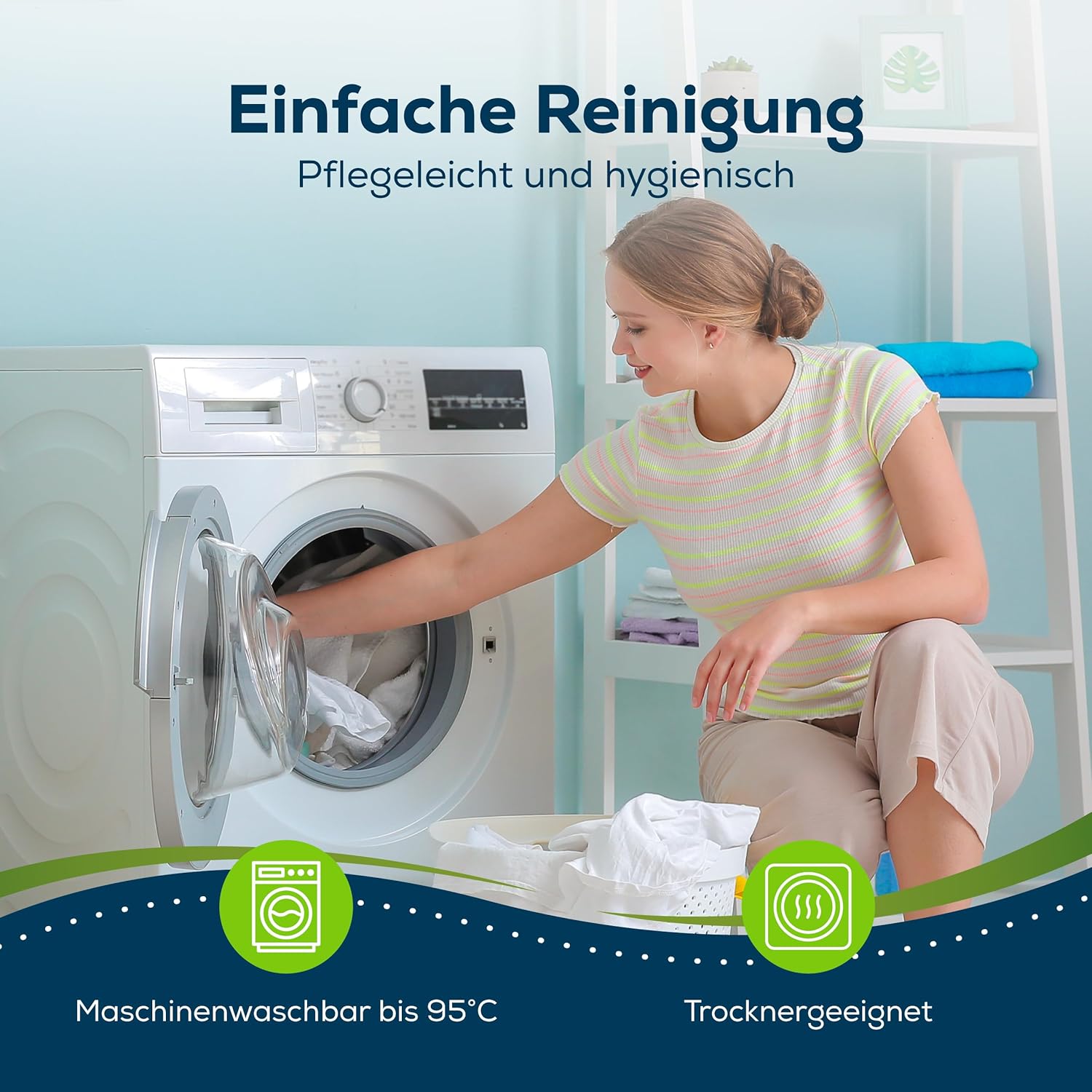 • Переща се кърпа за легло: можете да перете този протектор за матрак на 90°C и след това да го изсушите.