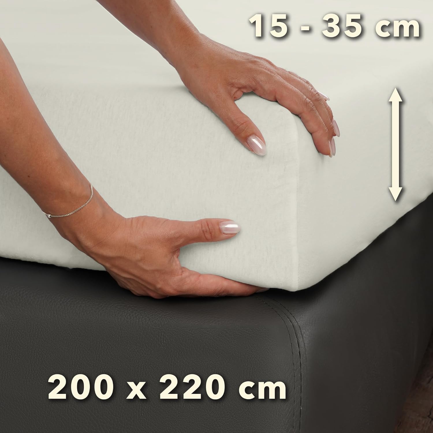 Чаршаф STUDIO Basic с фина облегалка, 200 x 220 см, 100% пениран памук, Oeko-Tex Standard 100, чаршаф, Джърси, сняг
