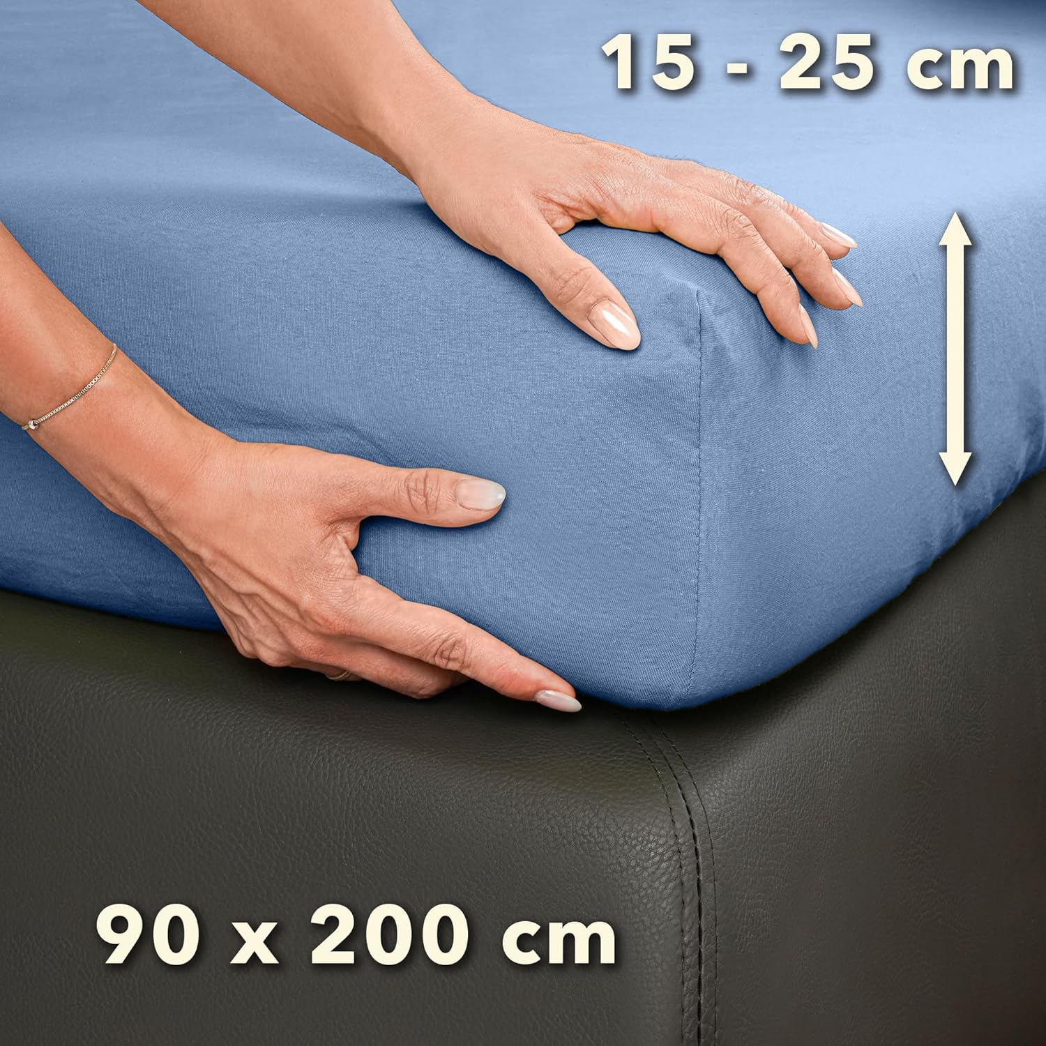 Чаршаф STUDIO Basic с фина облегалка 90 x 200 см, 100% пениран памук, Oeko-Tex 100, марково качество, чаршаф от Джърси 90 x 200 см - средно син