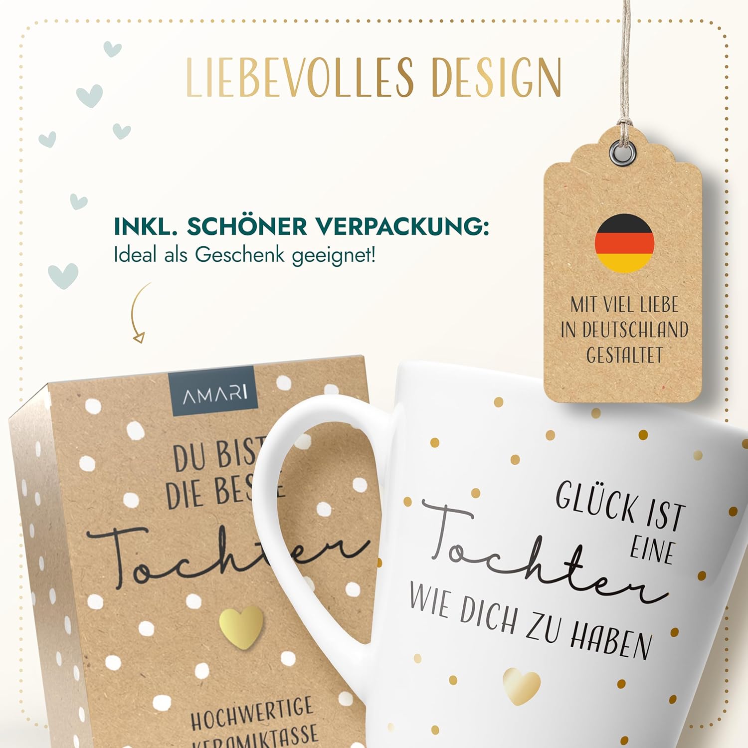 Чаша Amari® за най-добрата дъщеря – Подарък за благодарност – Чаша за кафе за дъщеря – Чаша за чай с послание – Идея за подарък за дъщеря