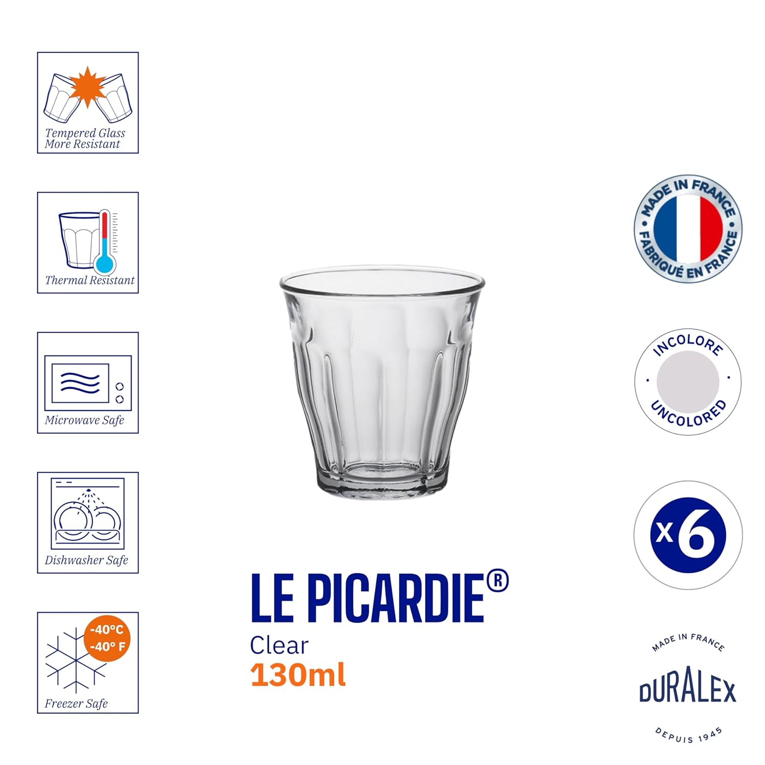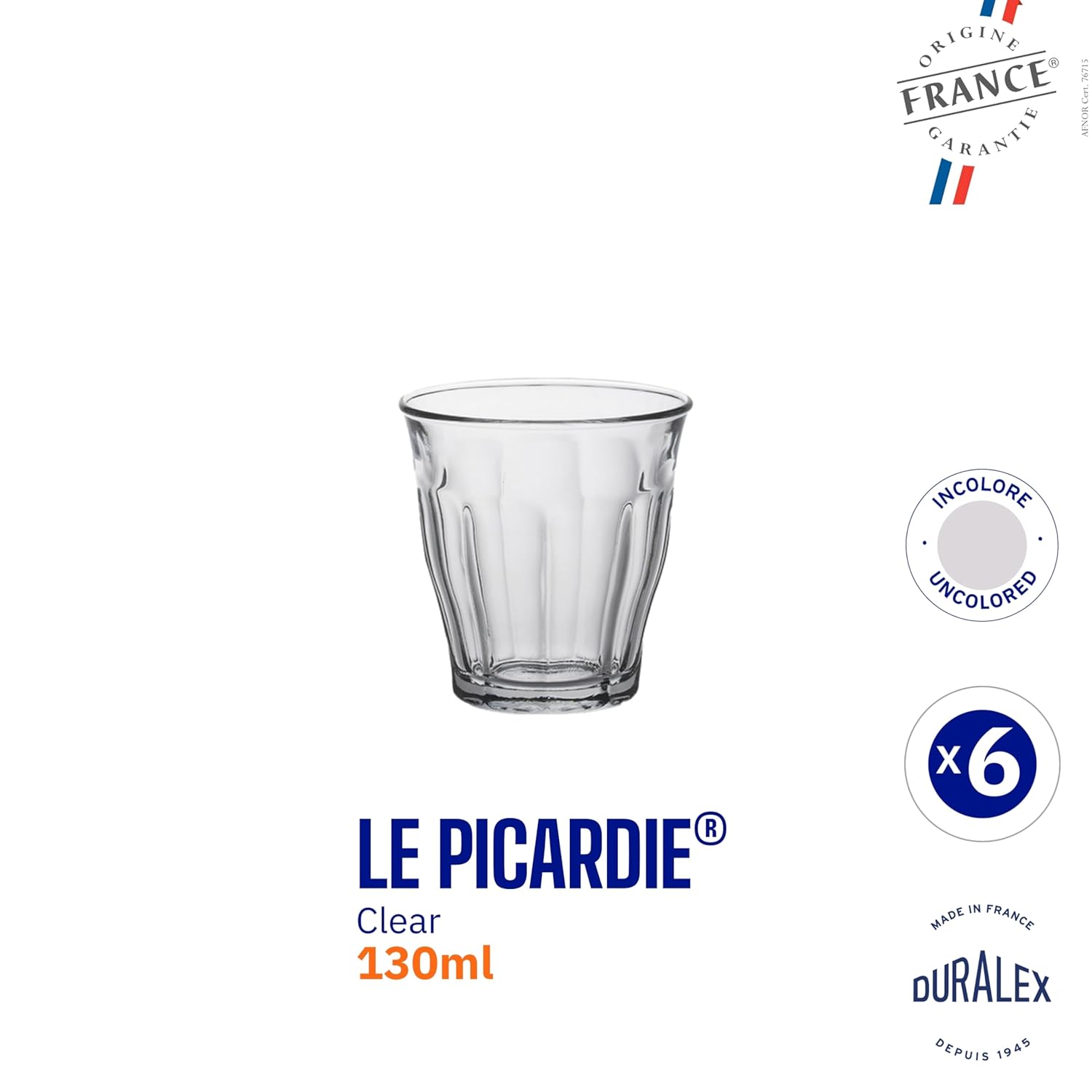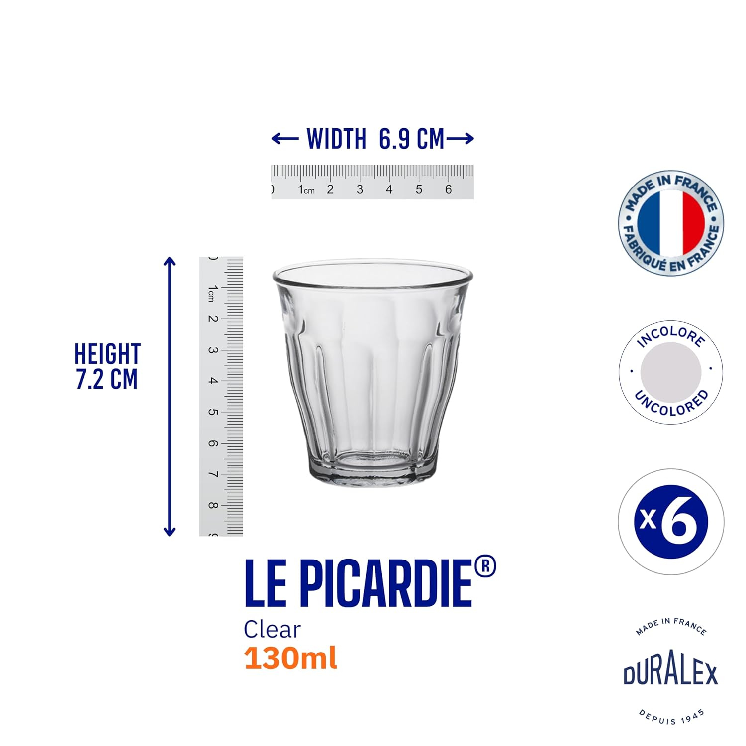 Чаша Duralex Picardie, чаша за пиене, 130 мл, закалено стъкло, прозрачна, 6 броя