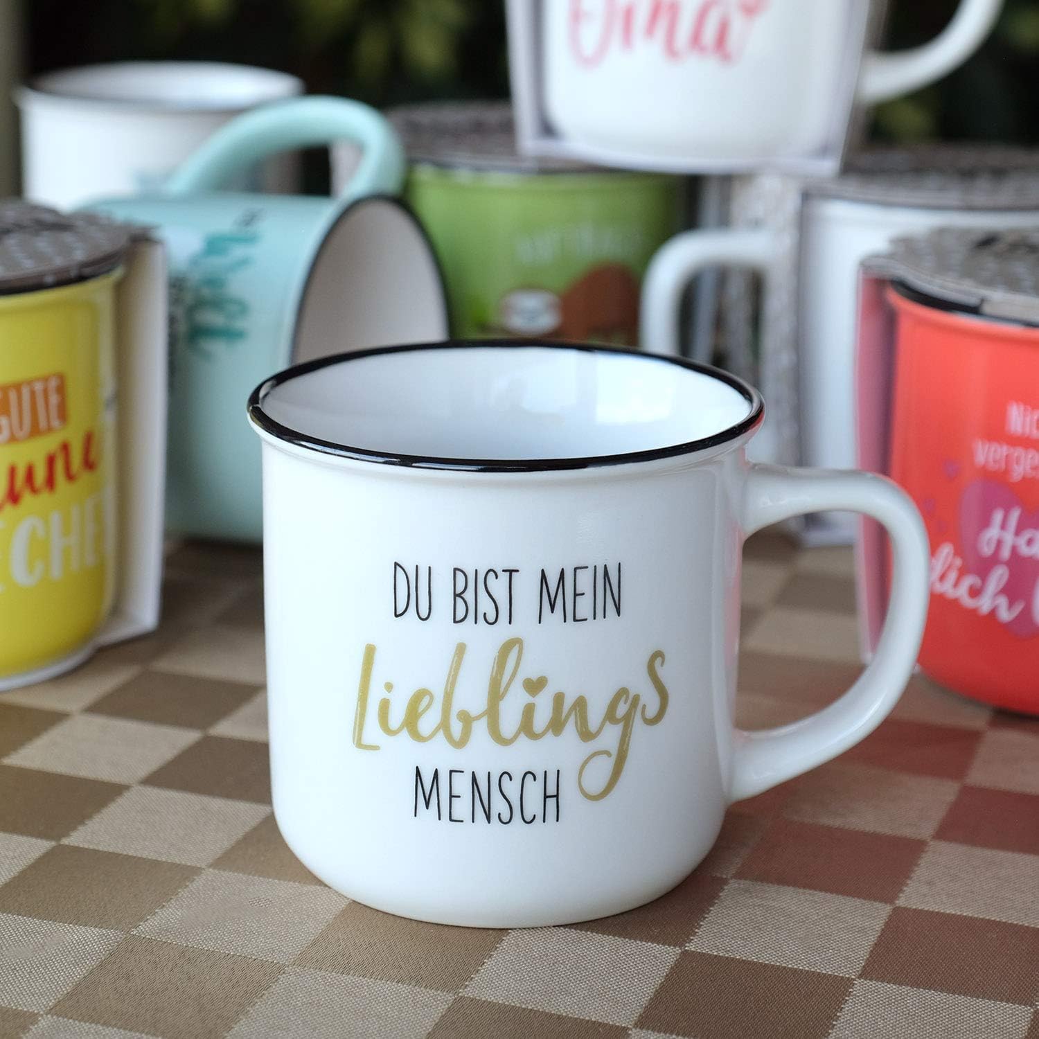 • НОСТАЛГИЧЕН ВИНТИДЖ ВИД: Чаши, чаши за кафе и чай в модерен ретро дизайн, с емайлиран вид и прекрасно послание :-) Тази чаша за кафе с надпис в модерен носталгичен вид внася цвят и глътка свеж въздух на сервираната маса, на събиранията за кафе и в офиса.