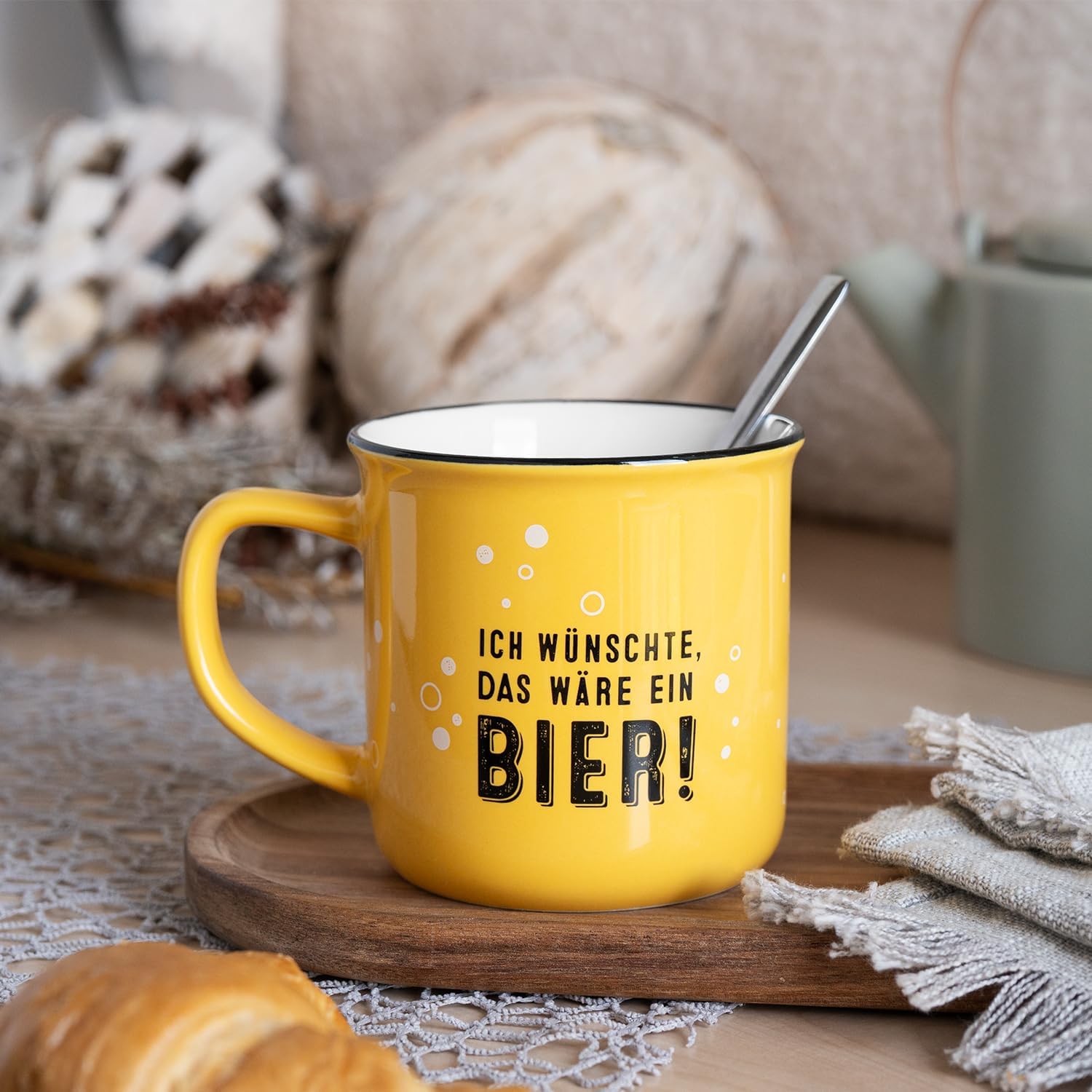 Чаша GRUSS & CO с дизайн "Бира" | Нов костен порцелан, емайлиран вид, 35 cl | Забавен подарък, закуска | 73912