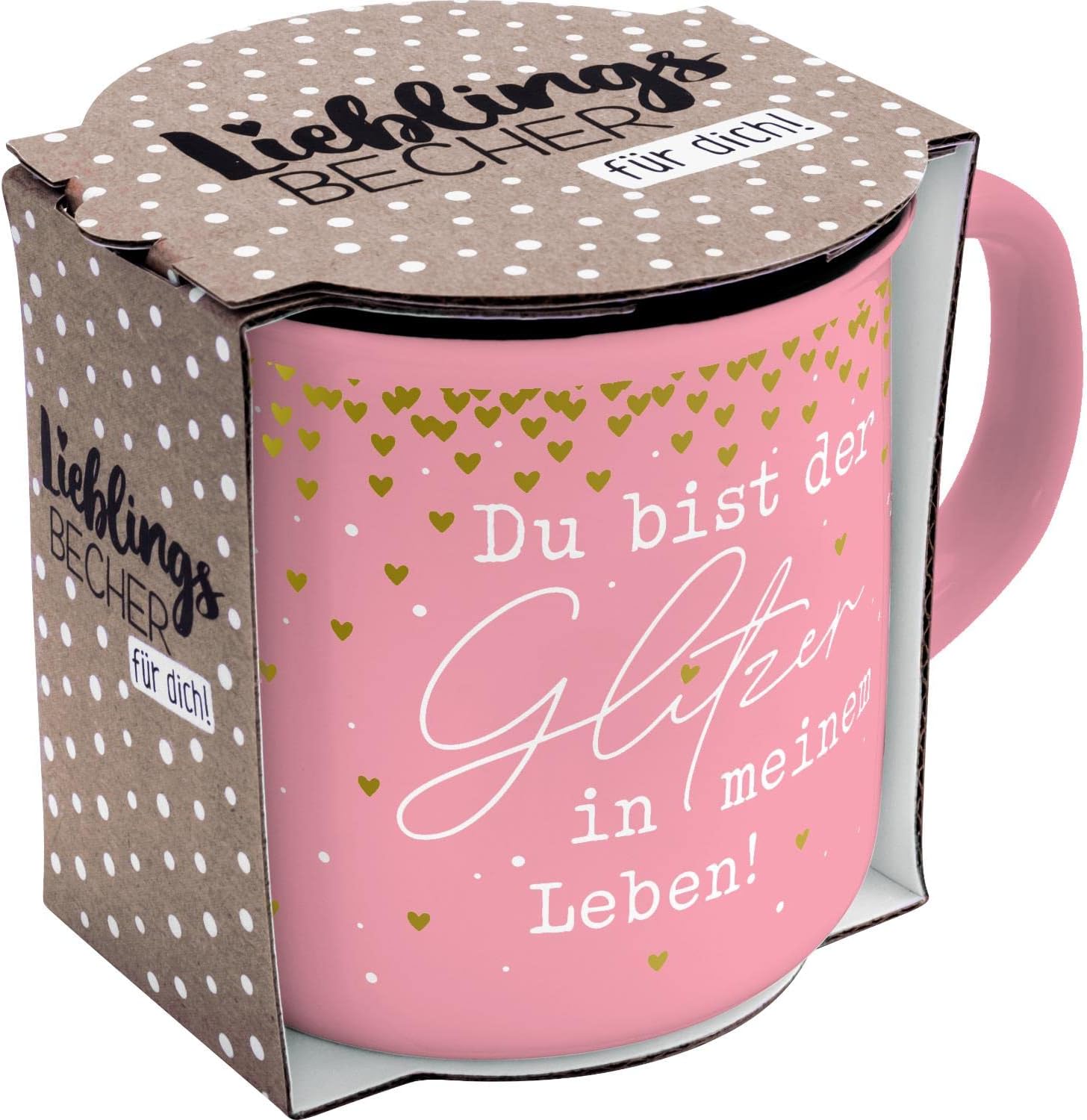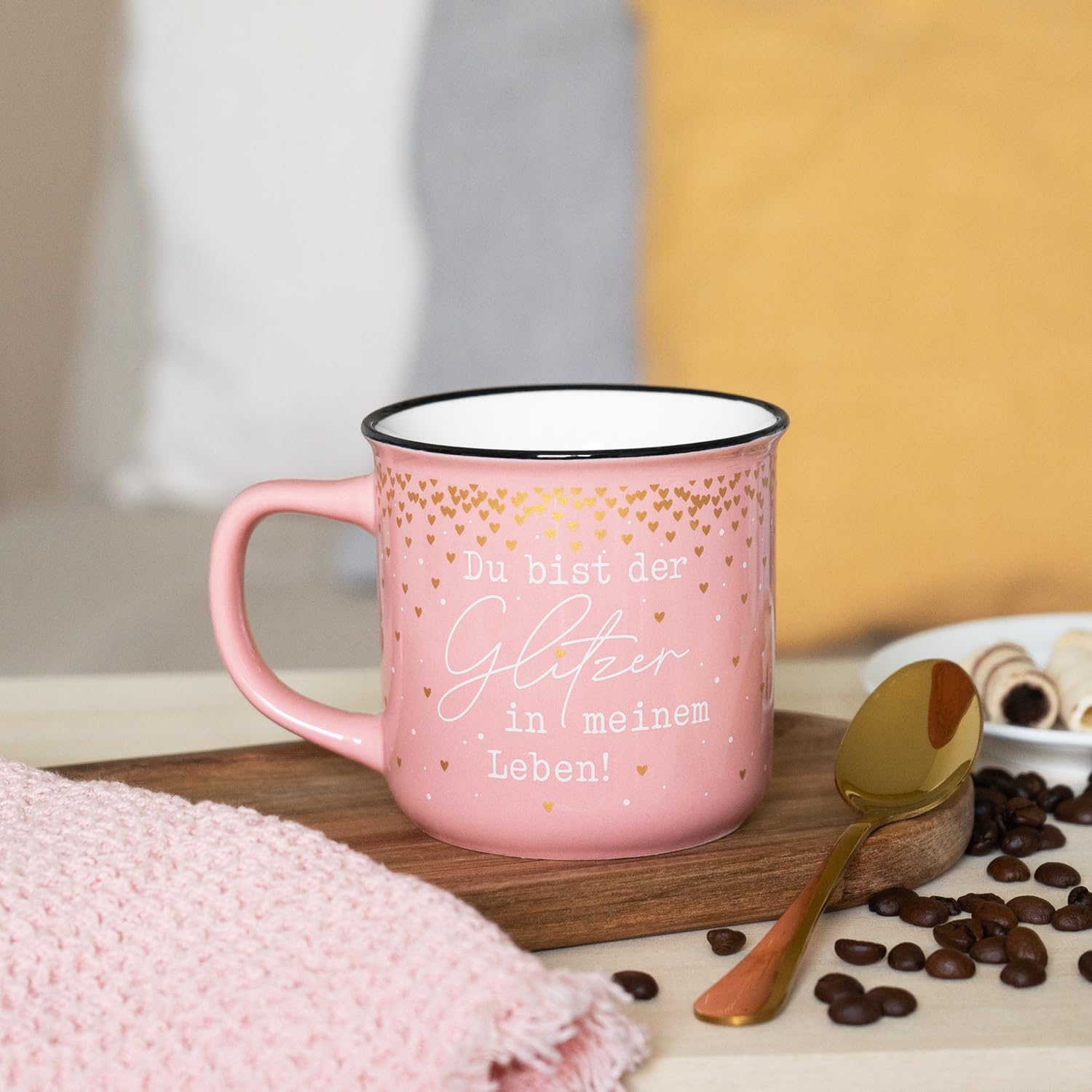 Чаша GRUSS & CO с дизайн "Блясък" | Нов костен порцелан, емайлиран вид, 35 cl | Подаръчна, забавна чаша | 47897