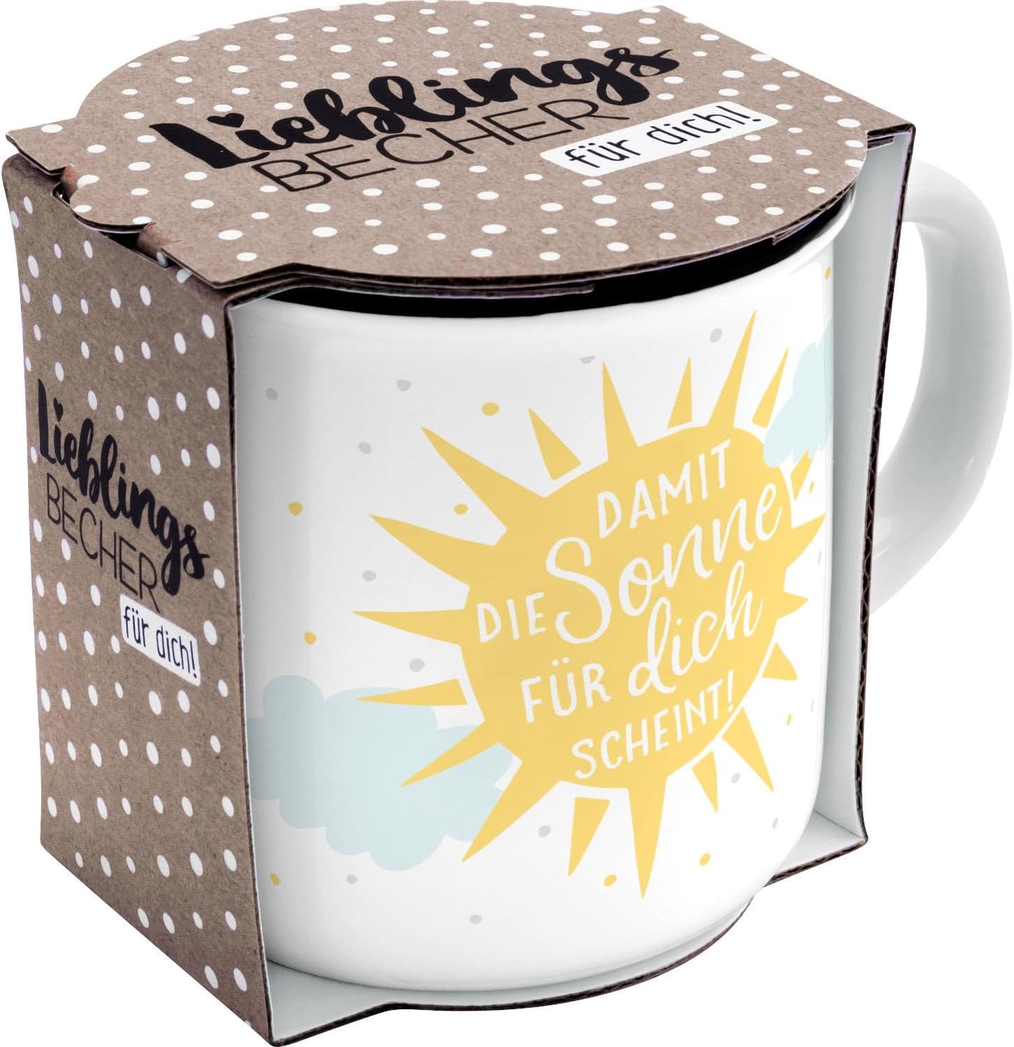 Чаша GRUSS & CO с дизайн "Слънце" | Нов костен порцелан, емайлиран вид, 35 cl | Подаръчна чаша с надписи | 47892