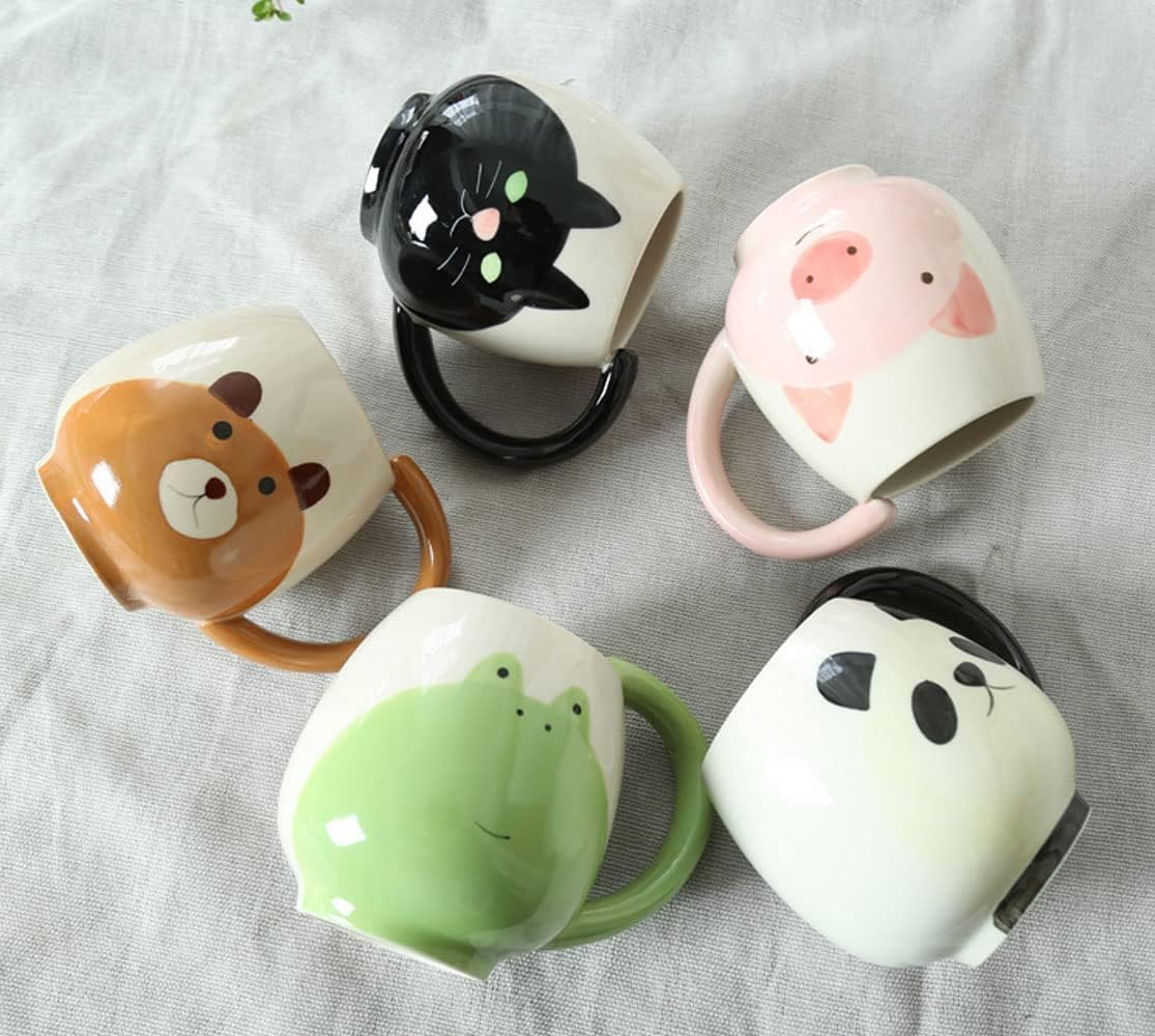 - Сладък ръчно рисуван животински модел, черна котка, панда, жълта котка, розово прасе и кафява мечка.