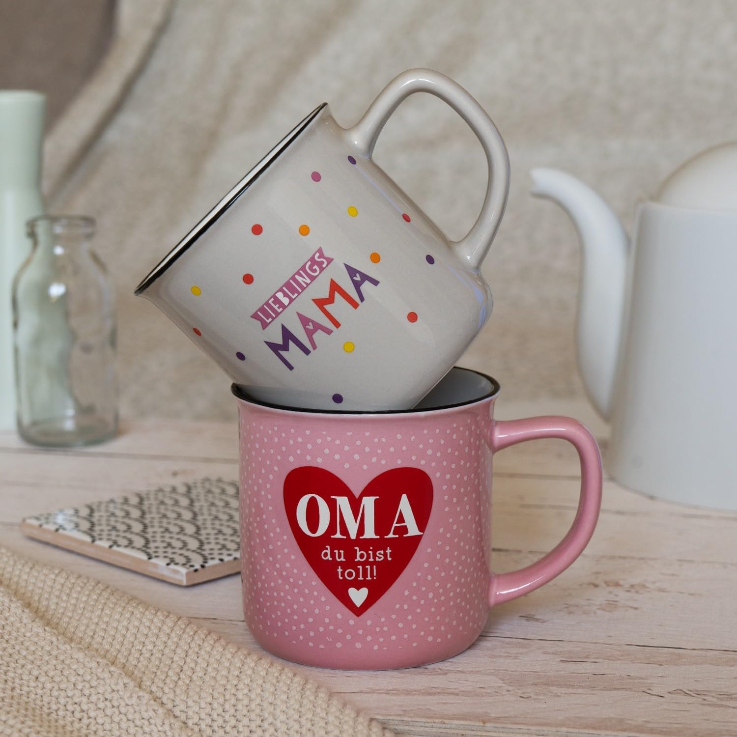 • НОСТАЛГИЧЕН ВИНТИДЖ ВИД: Чаши, чаши за кафе и чай в модерен ретро дизайн, с емайлиран вид и прекрасно послание :-) Тази чаша за кафе с надпис в модерен носталгичен вид внася цвят и глътка свеж въздух на сервираната маса, на събиранията за кафе и в офиса.