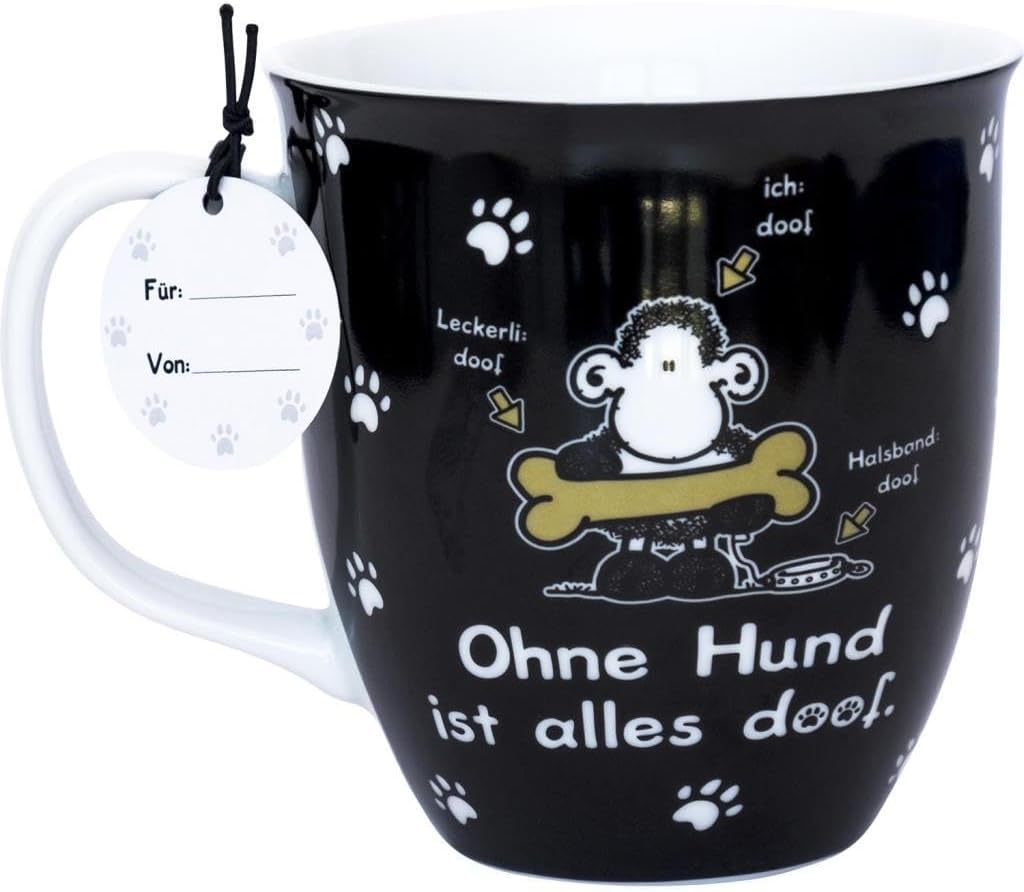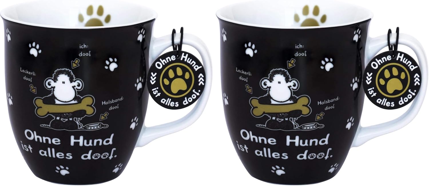 Чаша Sheepworld с дизайн "Без куче" | Порцеланова, 40 cl, Чаша със слоган | Подарък, Рожден ден, Любител на кучета | 45704 (Пакет от 2)