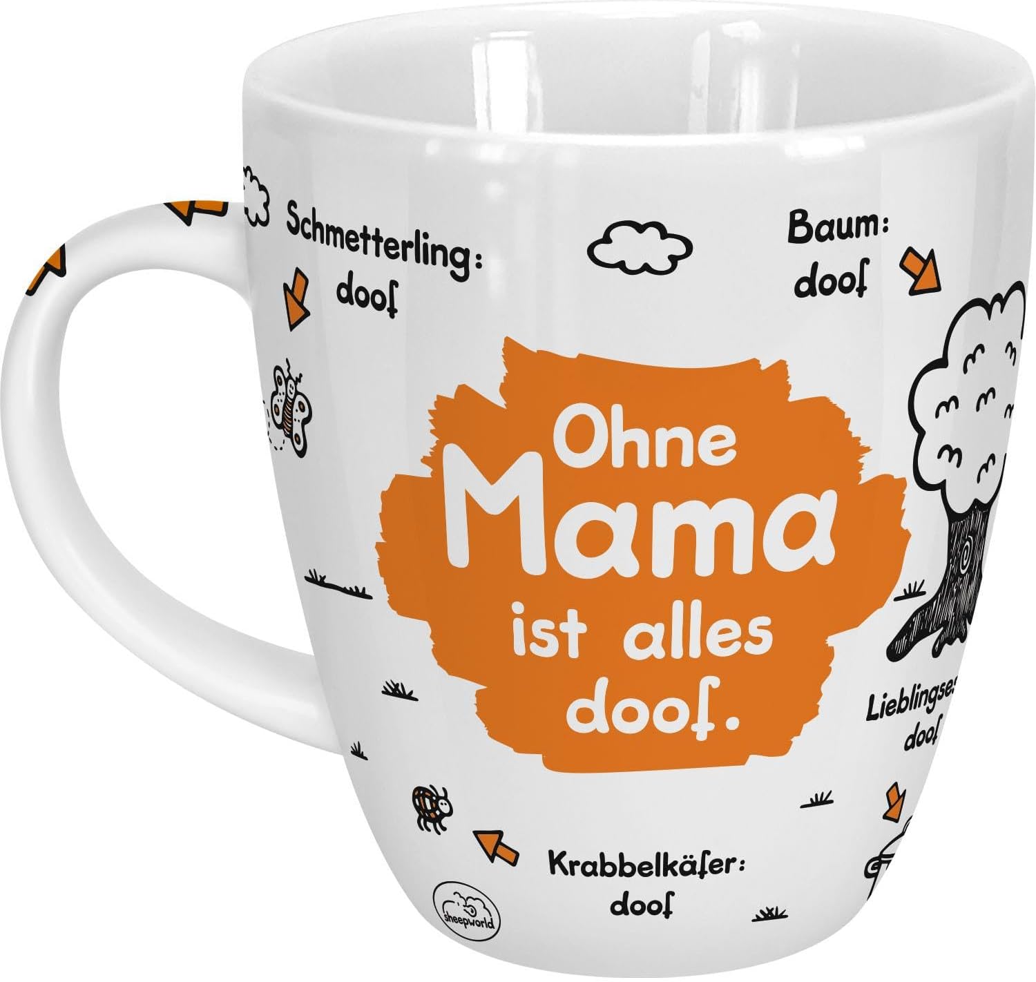 • ЧАША С НАДПИС: Порцеланова чаша Sheepworld с цветна мотивна декорация и надпис „Без мама всичко е глупаво“, обем 45 cl, диаметър 9.5 см, височина 10.5 см, подходяща за съдомиялна машина.