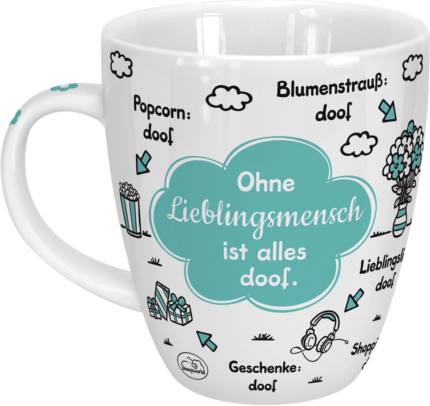 Чаша Sheepworld с дизайн "Всичко е гадно без любимия човек" | Порцелан, 45 cl | Подаръчна чаша за кафе и чай, чаша с надпис | 46508