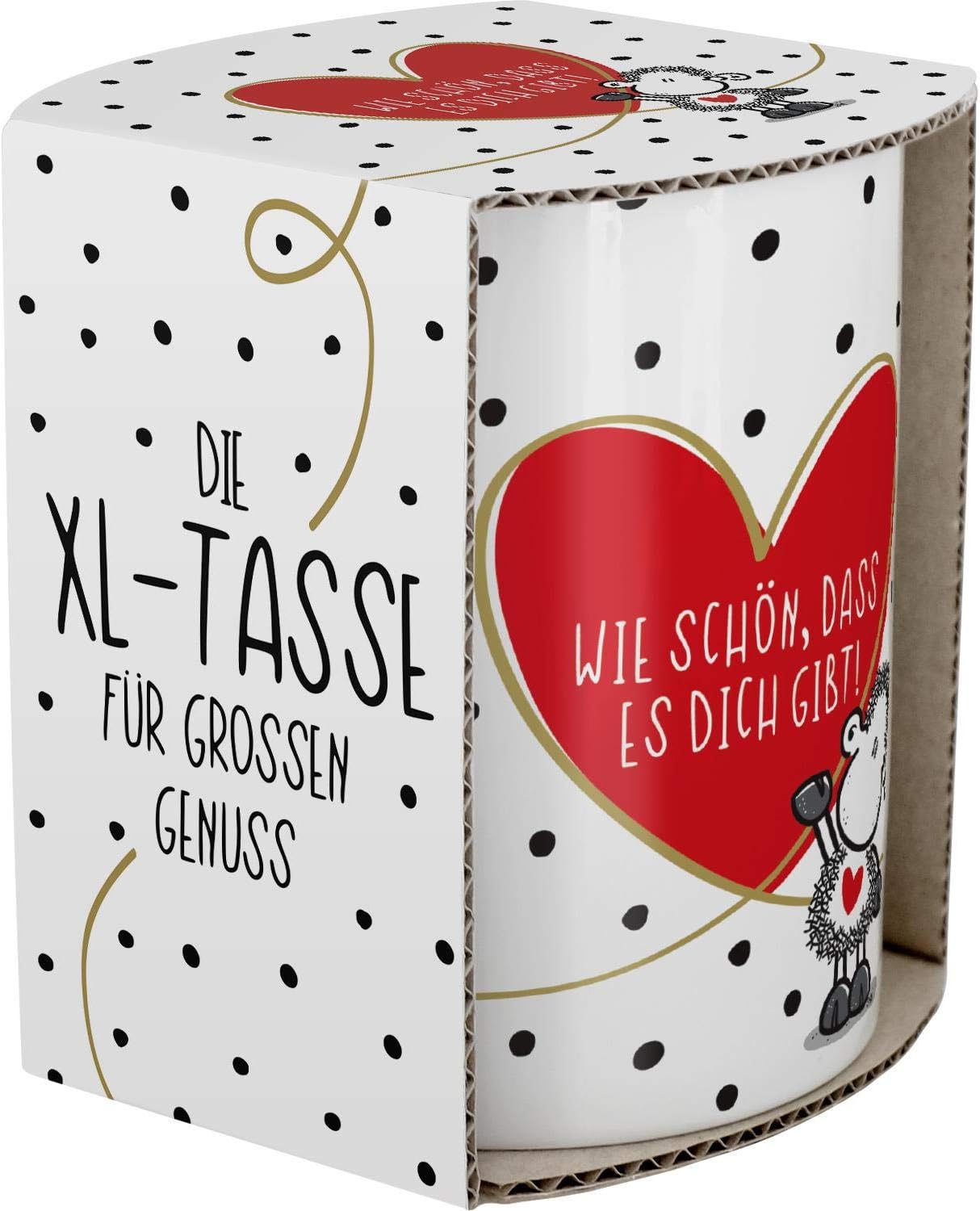 Чаша Sheepworld XL "Толкова е хубаво, че съществуваш" | Голяма порцеланова чаша за кафе, джамбо чаша, 60 cl, чаша с надпис | Подарък, гадже, приятелка | 46219